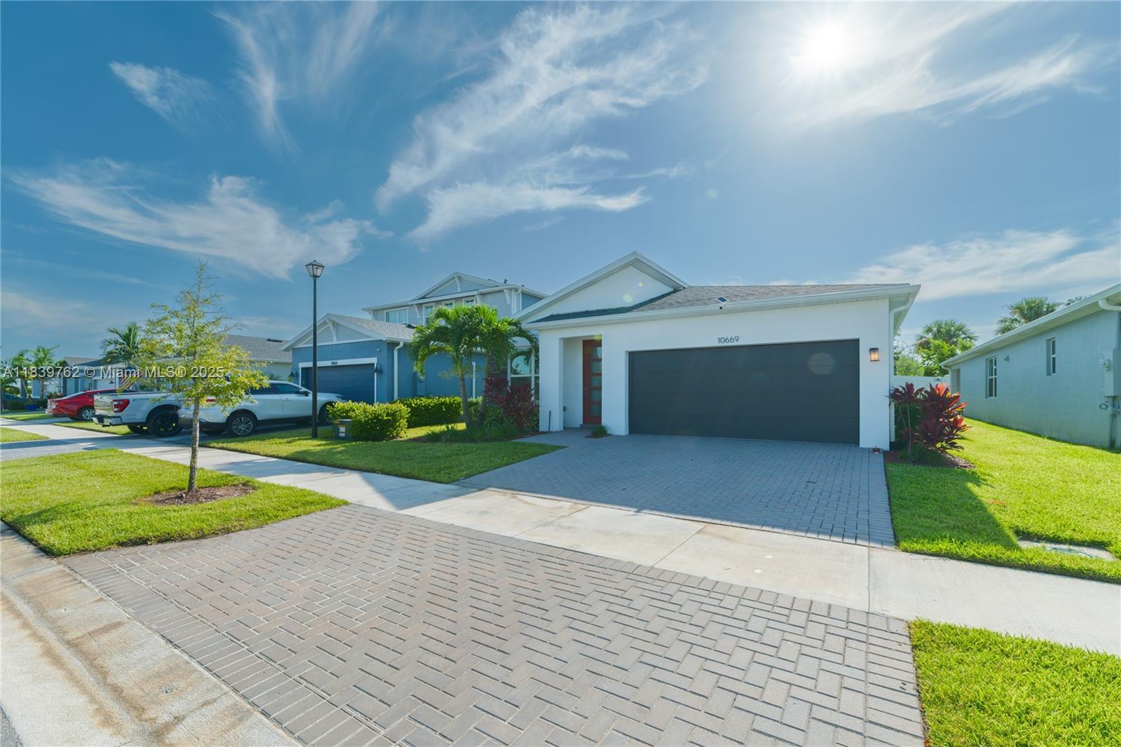 Welcome to this stunning 3BR/2.5BA Briar model in the gated Emery II at Tradition! Built in 2022, this nearly 2,000 sq ft home features impact windows, smart shades, LED lighting, and an open-concept layout perfect for entertaining. The gourmet kitchen boasts quartz countertops and stainless steel appliances, while the spacious primary suite offers a spa-like bath. Enjoy a fenced backyard, 2-car garage, and access to resort-style amenities including pool, fitness center, and trails. Close to Tradition Square, Cleveland Clinic, and top schools—this is luxury living at its best!