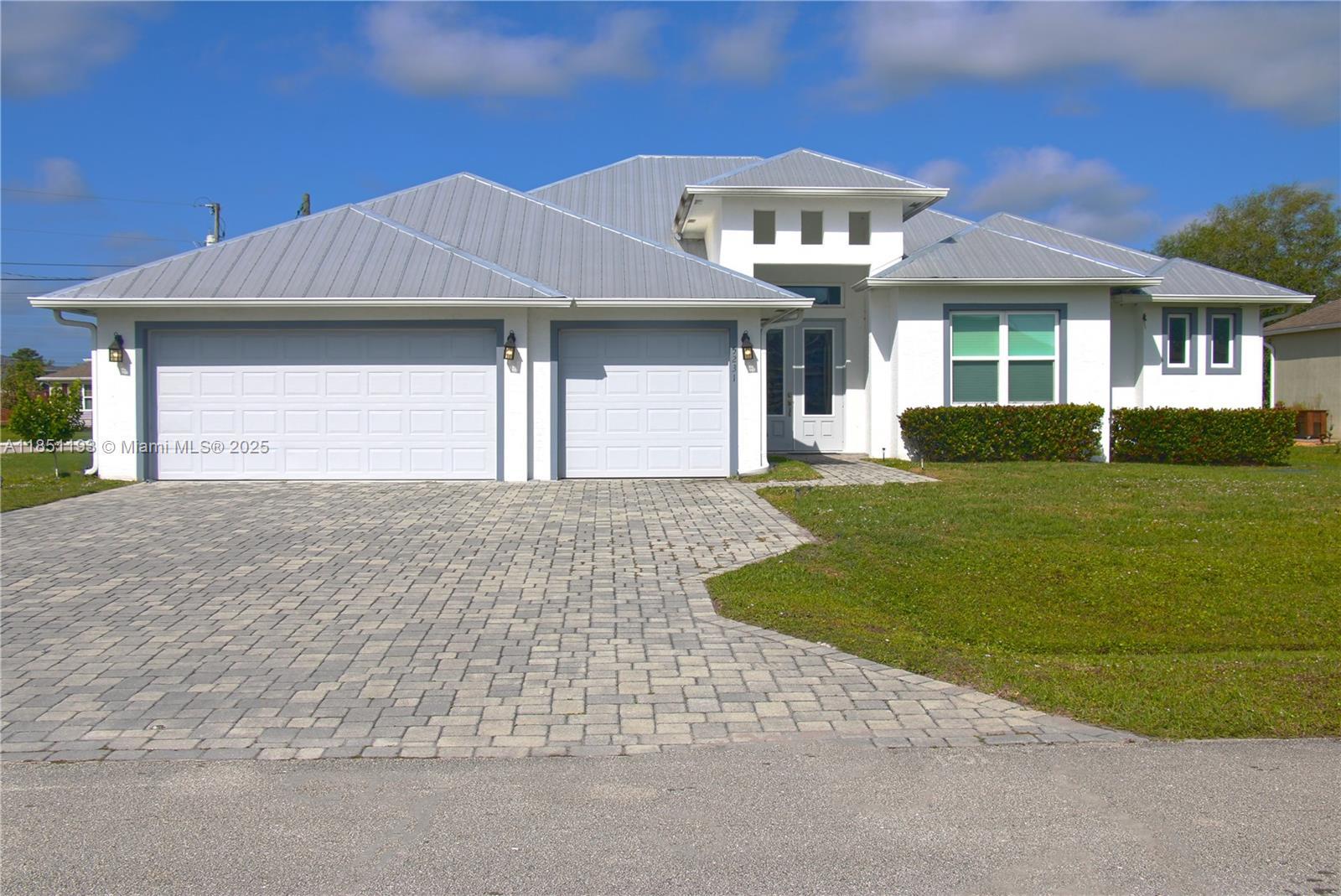 Welcome to your dream home in Port St. Lucie! Located in the sought out Torino Area! This impressive 1-story residence offers 5 bedrooms and 4 bathrooms, providing ample space for family living. With a 3-Car Garage, parking is convenient and easy. The spacious covered patio is perfect for relaxing as you enjoy family time. The modern kitchen features a stylish huge granite island, top-of-the-line appliances and elegant lighting fixtures. The primary bath boasts separate vanity sinks and a separate spa like shower and modern tub, while the expansive master bedroom includes a divided equal size walk-in closet. 3 beds/baths are on the opposite side of the house and is ideal for guests and privacy. OWNER IS LOOKING FOR A SHORT TERM RENTER 6 MONTHS OR BUYER! WILL CONSIDER 12 MONTHS LEASE