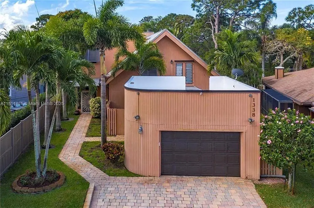 A tropical waterfront oasis like no other!!! This is a beautiful secluded home with a private boat dock in Rustic Hills. Rustic Hills was originally a popular fishing camp, now a quaint enclave of 178 canal front homes. Neighborhood entrance is through a covered bridge. Spacious 3 bedrooms with a loft, 2 baths, 2 story home with detached garage. Great view of the canal with approximately 80 feet of waterfront with a brand new seawall. Covered patio area with in-ground hot tub/ cocktail pool that is perfect for entertaining with a fire pit. Exquisite lush landscaping is truly breathtaking. Custom wood cabinetry and granite counters in the kitchen. Wood burning fireplace in the living room. A-rated Palm City schools, Martin County School District. Easy access to I-95 & FL turnpike.