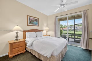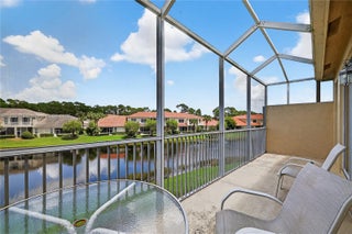 Lovely villa located in PGA Village’s Castle Pines community featuring 3 bedrooms, 2 baths, and a two-car garage. Enjoy high ceilings and bright open living spaces filled with natural light. The living room opens through sliding doors to a screened porch, perfect for relaxing. The master suite boasts vaulted ceilings, a walk-in closet, and an elegant bathroom with soaking tub and separate shower. Each bedroom enjoys access to a screened balcony with serene lake views. Community offers 24/7 staffed security gate, plus internet and basic cable included in the HOA fees.