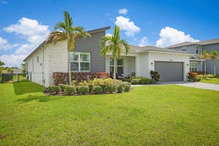 Motivated sellers! Mattamy quality-built home offers 3 bedrooms, 2.5 baths, and 2,100 sq.ft. of modern living. The open-concept design showcases soaring ceilings, natural light, and a stylish kitchen with quartz countertops, stainless steel appliances, gas range, & large island. The spacious primary suite is a true retreat with an expansive custom closet, large walk-in shower, and dual vanities. A versatile flex space and 2-car garage with OX flooring and Craftsman storage system add to the home's appeal. Enjoy the covered patio, lakefront view, and fenced yard. Community amenities include a resort-style pool, clubhouse, fitness center, and pet-friendly paw park. HOA covers lawncare, irrigation, internet, and cable. Minutes from Tradition Square, Cleveland Clinic, & I-95 for easy commutes.
