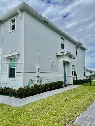 Newer Townhome from 2024 In gated community Veranda Landing, lake view .Tile in first floor, carpet upstars. 3 bedrooms 2.5 baths plus an extra room/ Den or office in first floor . Italian white cabinets, quartz countertops, stainless steel appliances. Hurricane impact windows through out the whole house. Easy to show. Quick move in. House is fenced