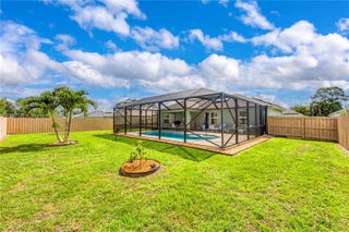 Fully furnished 3BR/2BA home with open-concept floor plan, screened lanai, and heated saltwater pool with sun shelf. Split-bedroom layout with primary suite separate from secondary bedrooms. Interior features include kitchen island with bar seating, foam mattresses with hotel collection pillows, Smart TVs in all bedrooms and living room, sofa bed, and refrigerator with water filtration system. Exterior offers fully fenced backyard, 4-car driveway, and 2-car garage. Located minutes from Tradition, I-95, Cleveland Clinic Hospital, shopping, dining, approx. 30 minutes to Jensen Beach, and walking distance to Peacock Lake. Month-to-month or short-term rental upon request. Corporate leases considered, available immediately.