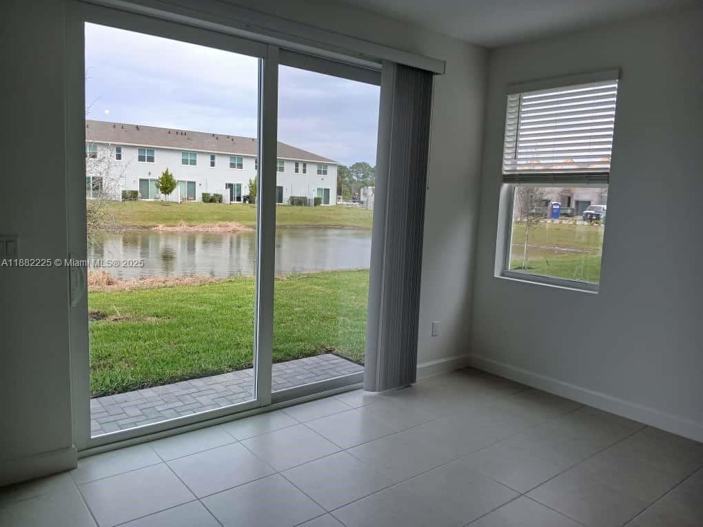 Corner Townhouse for Rent features 3 bedrooms, 2.5 bathrooms, and + den. It has stainless steel appliances, a covered garage, impact windows, a Ring doorbell, and WiFi Internet. Enjoy a lovely lake view from the living room and master bedroom, as well as a beautiful lake view from the secondary bedroom. Located near the soon-to-open hospital, close to Publix, restaurants, beauty salons, and just minutes from the Turnpike and a gas station. Be the first to live in this brand-new home, in a privileged location.