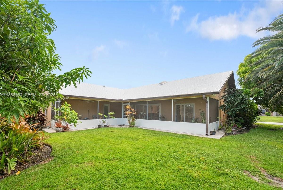 PRICE REDUCTION and 2000 seller credit to buyer at closing. Welcome to this charming 3-bedroom, 2-bath home in Port St. Lucie, offering comfort and peace of mind with a new metal roof, full impact windows and doors, an A/C from 2019 and water heater from 2022. Featuring a blend of tile and carpet flooring, this home includes a full-size washer and dryer for convenience, high ceilings and skylights. No HOA or vehicle restrictions. Enjoy the spacious screened porch overlooking a large backyard with MATURE fruit trees—perfect for relaxing or entertaining. Don’t miss this move-in ready home with plenty of space both inside and out!