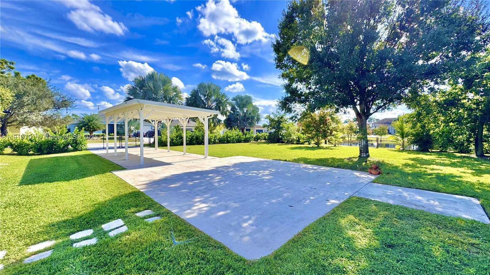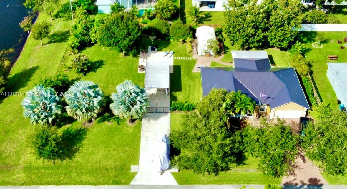 A rare find! 3/2/2cg CBS home on a fully fenced .46 acre double lot with water views and lush landscaping - ideal for those who want to relax in nature in their own private oasis while also enjoying quick access to Tradition and interstate roadways. This home has been meticulously maintained and upgraded: new roof (2024), newer A/C (2022) & appliances, and the irrigation system is on its own well water source. The second driveway and covered carport is perfect for your boat, camper or work vehicle. The rear of the home boasts a 20X20 custom tiled patio & screened porch. There is an additional 288 sqft workshop/shed with electricity & a garage door. The home is equipped with accordion hurricane shutters on all doors & windows. No neighbors to the South & no HOA. This is a must see home!
