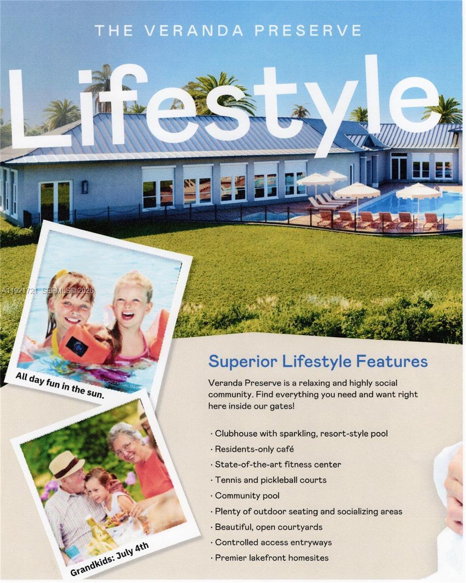 BEST VALUE AND READY TO SELL AT $389,900! Move-in ready Magnolia model in gated Veranda Preserve West community. Well-kept home offers almost 1700 sq', impact windows/doors natural gas appliances, fenced backyard with a covered screened patio, overlooking the Preserve for added privacy. The open kitchen, dining, great room layout features a large island walk-in pantry, and plenty of counter space. The Primary suite includes double sinks, a walk-in closet and linen closet. Bedroom 2 includes a closet and works well as a flex room or office; Bedroom 3 features its own walk-in closet. Inside laundry room plus an additional 5'x10' storage/workshop area. 55+ community with 2 gated entrances, HOA includes lawn care landscaping and irrigation. Amenities include resort-style pool, hot tub, fitness center, movie theater, pickleball, tennis, bocce and a full calendar of activities. All for only $259. monthly maintenance. Also INCLUDED IS THE EV CHARGER. MOVE-IN READY WITH PRIVACY, UPGRADES AND IMMEDIATE ENJOYMENT OF ALL RESORT-STYLE AMENITIES!