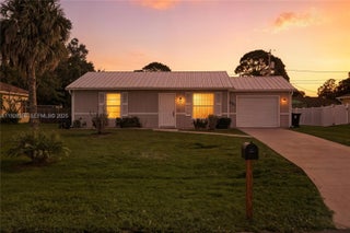 This home is a rare find with a clean look! Recent upgrades include Metal Roof 2022, A/C 2025, Water heater 2023 and freshly painted inside. Tiled through-out and easy access to the garage from the kitchen. The screened in porch in the rear of home overlooks a large back yard. Great location! Walk to shops, restaurants, supermarket, schools and park. Surrounded by many well kept homes. Easy access to Saint Lucie Blvd. all sizes, dates are approx.