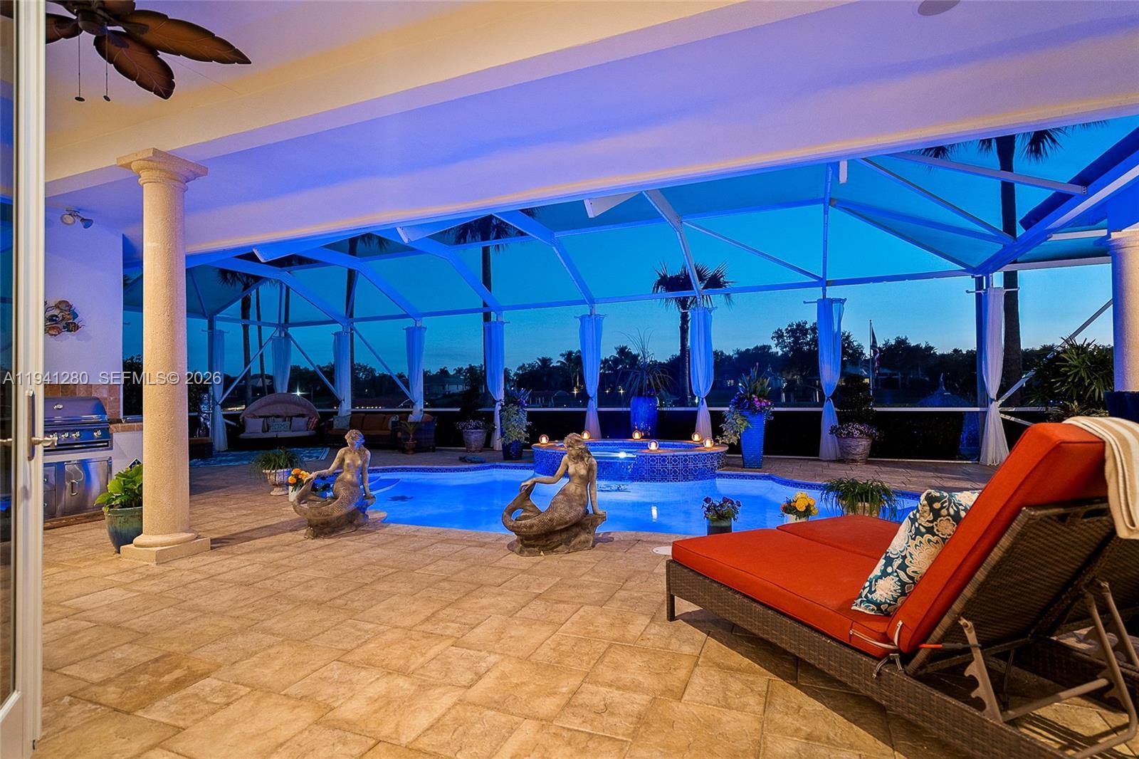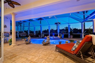 Welcome to your own private paradise in the heart of Port St. Lucie. This stunning custom Mediterranean-style CBS estate offers the ultimate in luxury waterfront living with over 150 feet of frontage along the C-24 Canal. Designed for boating enthusiasts & entertainers alike, the property features a private dock with boat lift, a tiki hut perfect for sunset gatherings, & quick access to the nearby public boat ramp. This five-bedroom, five-bath residence offers an exceptional floor plan with a first-floor guest suite, home office, family room, dry bar, balcony, residential elevator, & a three-car garage, all thoughtfully designed for comfort, functionality, & elevated Florida living. A screened pool & spa create a true resort-style outdoor retreat, complemented by a summer kitchen with grilling station, cabana bath, fire-pit area, & lush tropical landscaping. Inside, soaring ceilings & travertine floors set the tone for refined living. The chef’s kitchen features dual sinks, dishwashers, ovens, refrigerators, an eight-burner gas cooktop, granite countertops, wine coolers, icemaker, & generous prep space. The primary suite offers dual walk-in closets, a sitting area, & a spa-inspired bath. Additional highlights include impact windows & doors, Taylor foam wall insulation, Icynene ceiling insulation, surround sound, & central vacuum. Located in the gated enclave of South River Shores with low HOA fees, minutes to the Turnpike, shopping, dining, & Tradition.