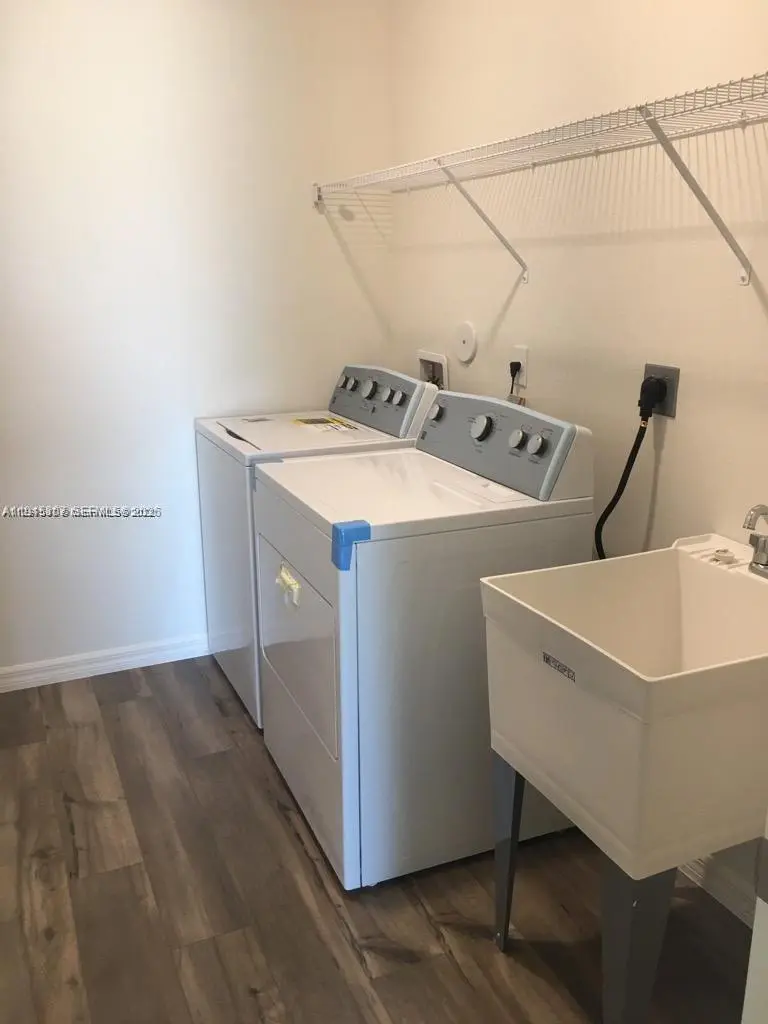 Beautiful 4-bedroom, 2-bath single-family home with a 2-car garage, offering over 1,800 square feet of air-conditioned living space. The kitchen and bathrooms feature elegant granite countertops, while wood-look vinyl flooring enhances the main living areas and plush carpeting provides comfort in the bedrooms. The home is equipped with stainless steel appliances and includes a dedicated laundry room with washer and dryer for added convenience.