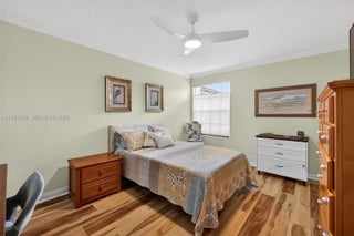 Approximately 1,500 square feet, this two-bedroom, two-bathroom house is located in THE LAKES, a gated, mature community. The home features premium vinyl flooring throughout and quality materials, including crown moldings. The private pool provides a refreshing retreat. The community offers exceptional amenities, including a clubhouse, lap pool, resort-style pool, bocce ball court, tennis and pickleball courts, and a children's playground. Conveniently located near the popular Tradition Square, with its diverse shops and restaurants, this home is also just minutes away from the new Tradition HEART development, which features additional shopping and dining options, including the Fresh Market grocery store. Situated on a quiet cul-de-sac, this home provides a tranquil living experience. The ideal layout and desirable community features make this property an attractive choice.