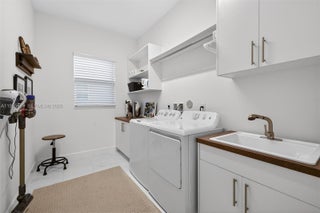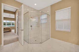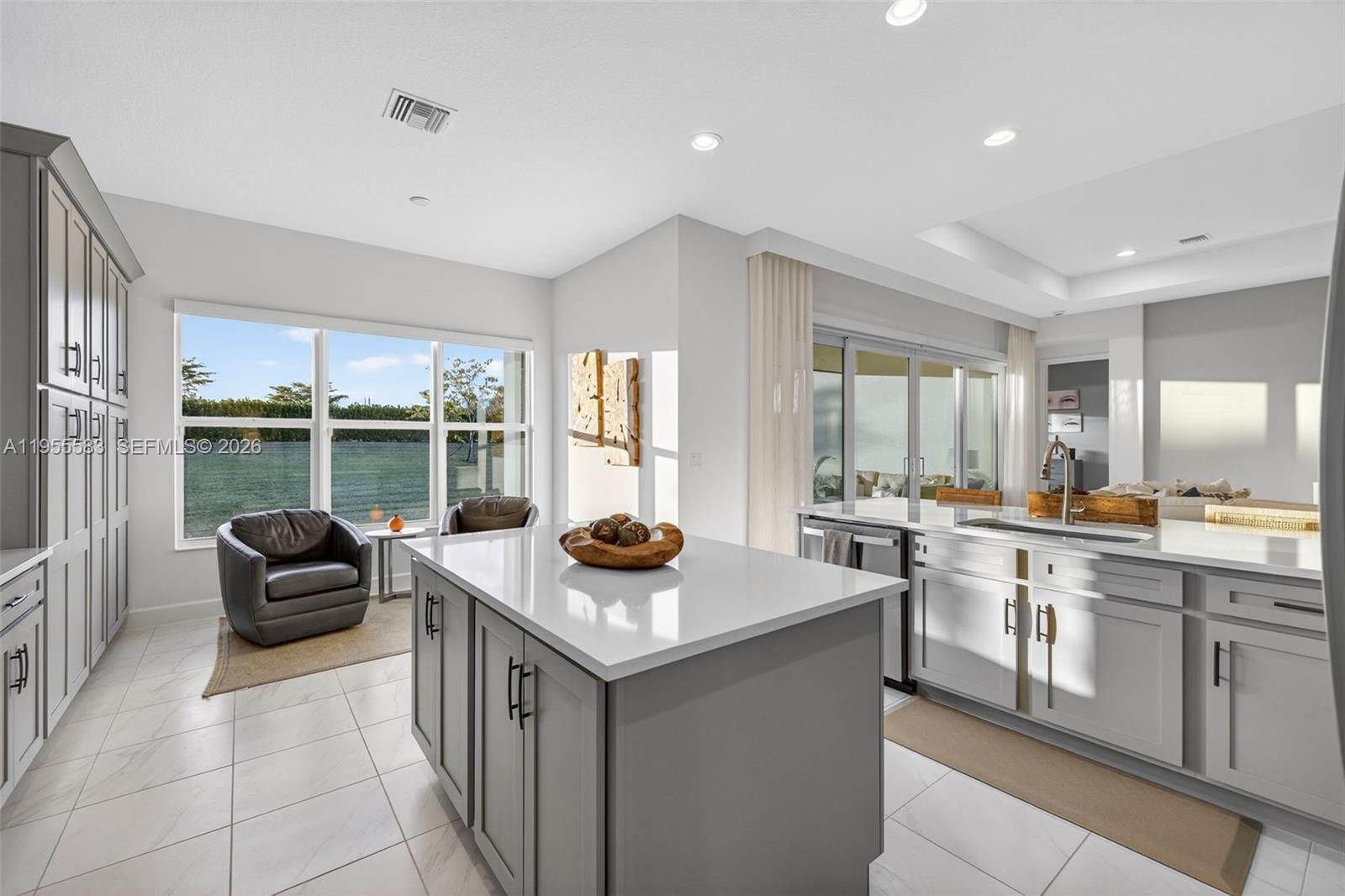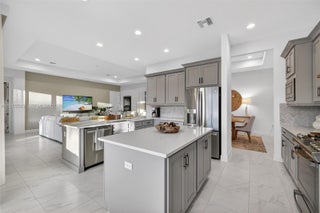 Magnificent and highly coveted private lot offering lush greenery views—an ideal backdrop to create your own personal oasis. This practically brand-new, model-like home welcomes you with impeccable condition and over $150,000 in premium upgrades throughout. Elegant upgraded tile flooring flows seamlessly through the living areas, kitchen, and bathrooms. The chef-inspired kitchen is a standout, featuring upgraded appliances, a vented hood option, quartz countertops, enhanced cabinetry, kitchen pull-outs, a trash cabinet, and a converted pantry for maximum functionality. Thoughtful custom built-ins include a linen closet, laundry cabinetry with sink, and beautifully finished primary closets. Designer wallpaper, fresh interior paint, plantation shutters, motorized blinds, and stunning custom drapery add sophistication from floor to ceiling. Every detail has been carefully curated, offering luxurious, move-in-ready living at its finest.