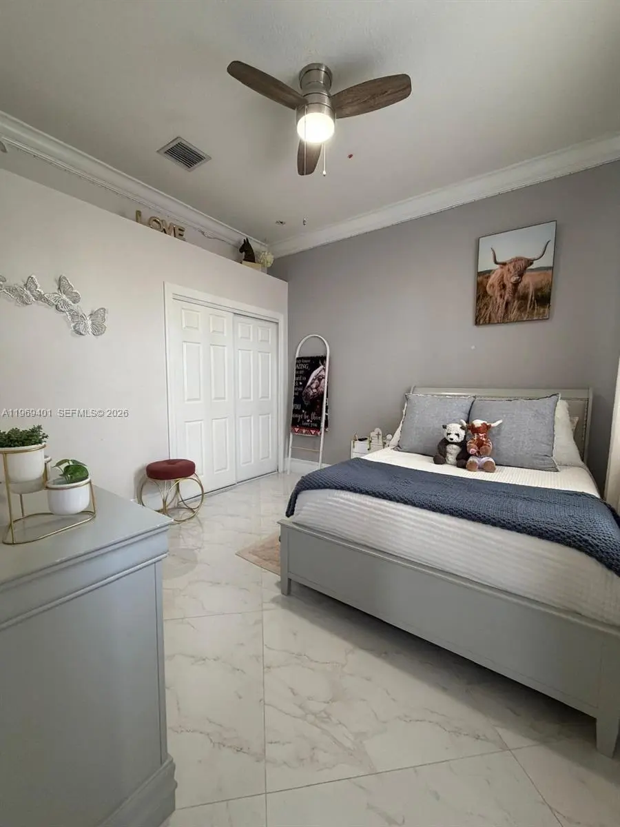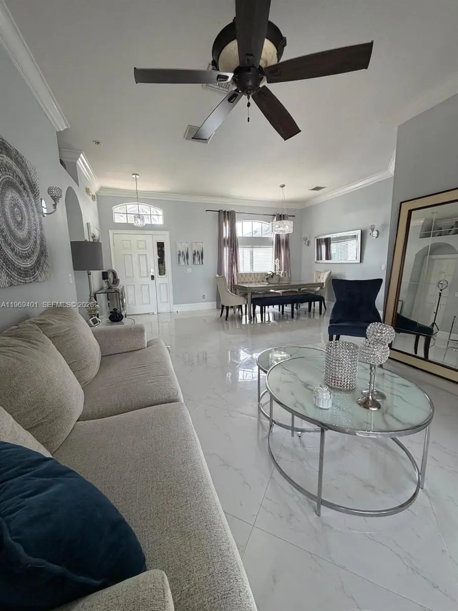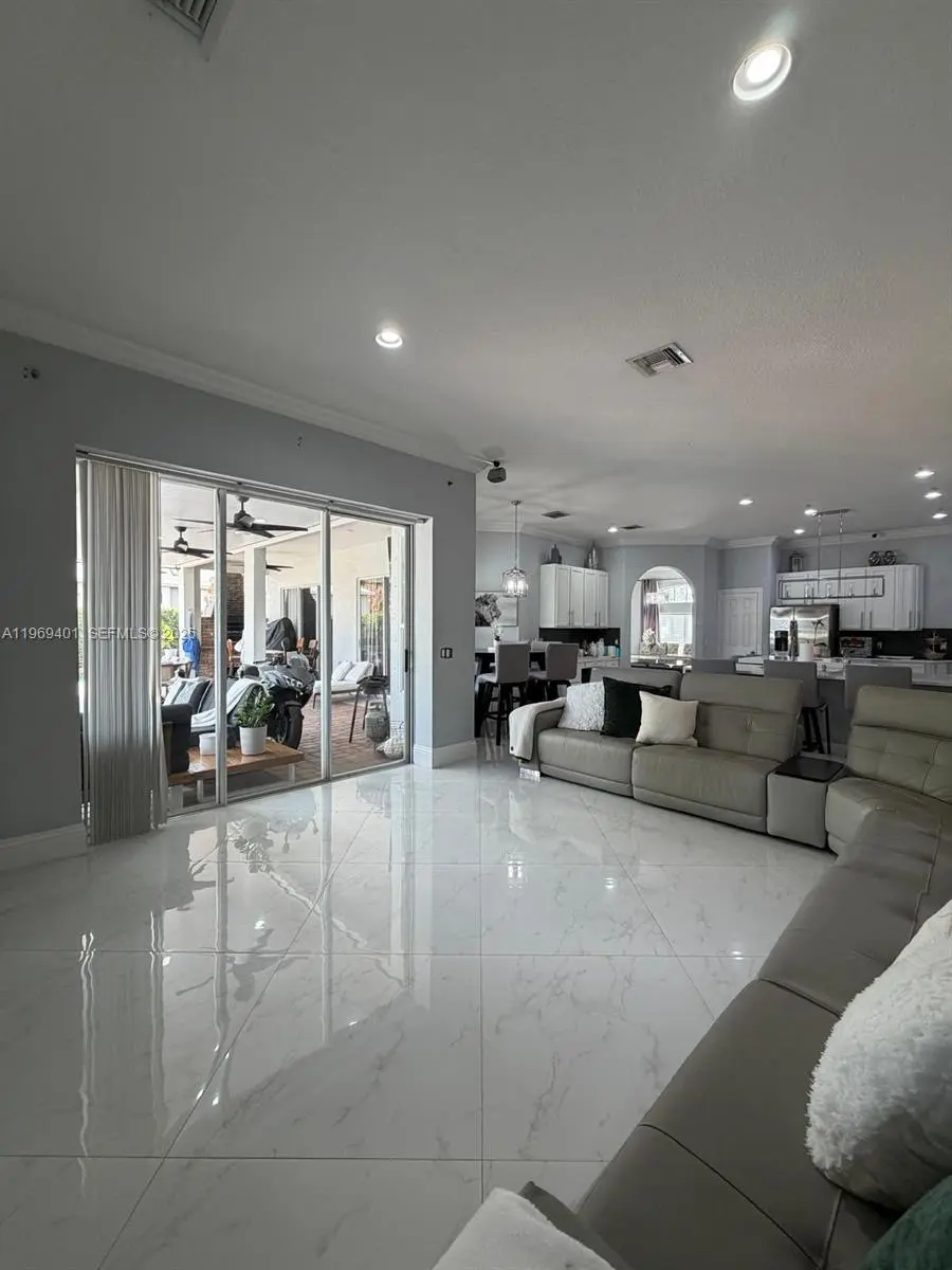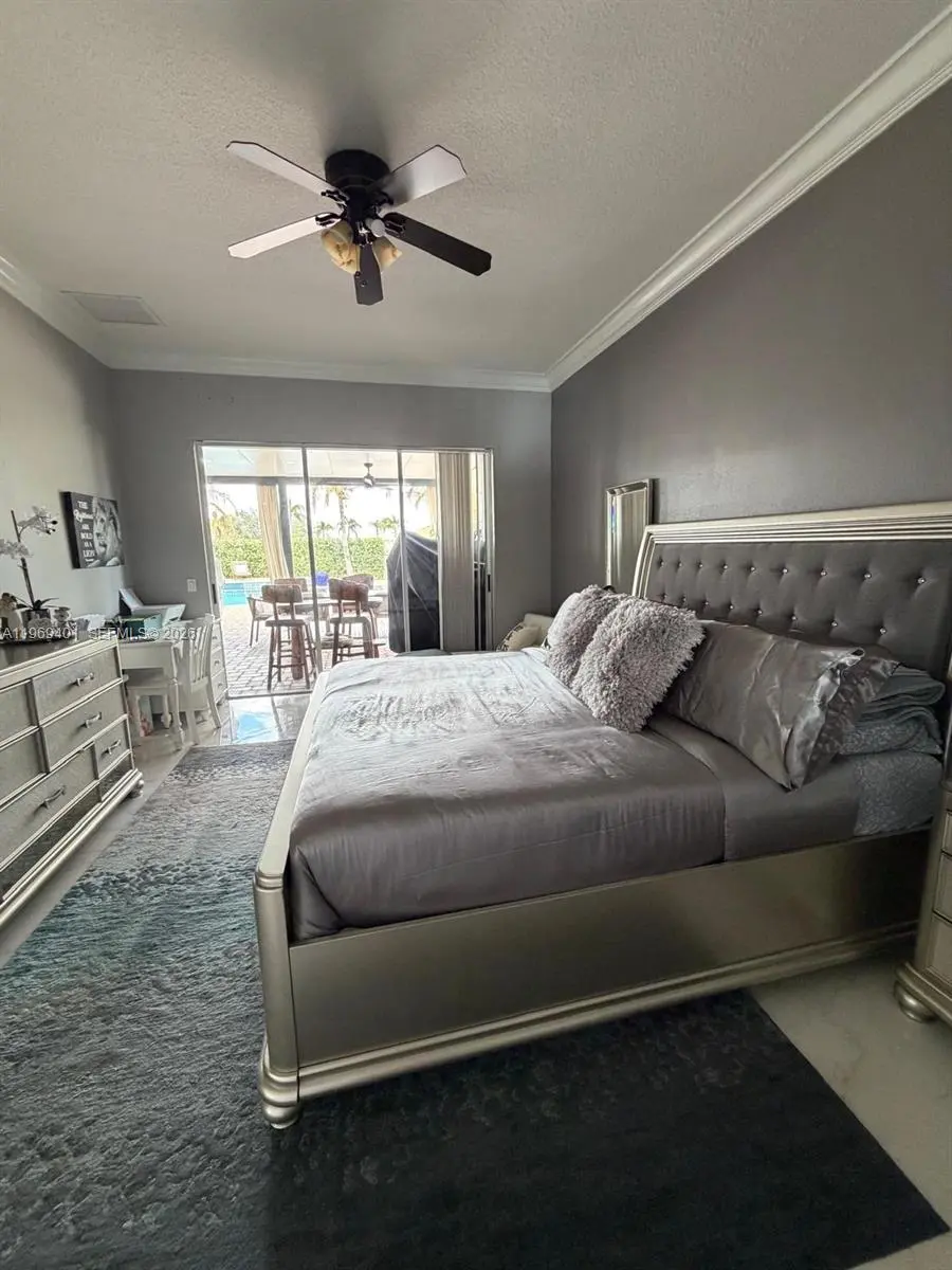 Welcome to your dream home nestled in the exclusive gated community of Palm Lake Gardens! This move-in-ready home boasts 4 spacious bedrooms, 3 full bathrooms, and a 3-car garage. Crafted with solid CBS construction, the home features a brand new roof and air conditioning system (2024), along with a newer water heater. This traditional residence features a desirable split floor plan and a fully equipped kitchen with stainless steel appliances and a center island, ideal for everyday living and entertaining. Enjoy indoor-outdoor living with a patio overlooking a sparkling pool and a lush backyard perfect for gatherings. Enjoy this pet-friendly community with low HOA fees. Schedule your showing today!