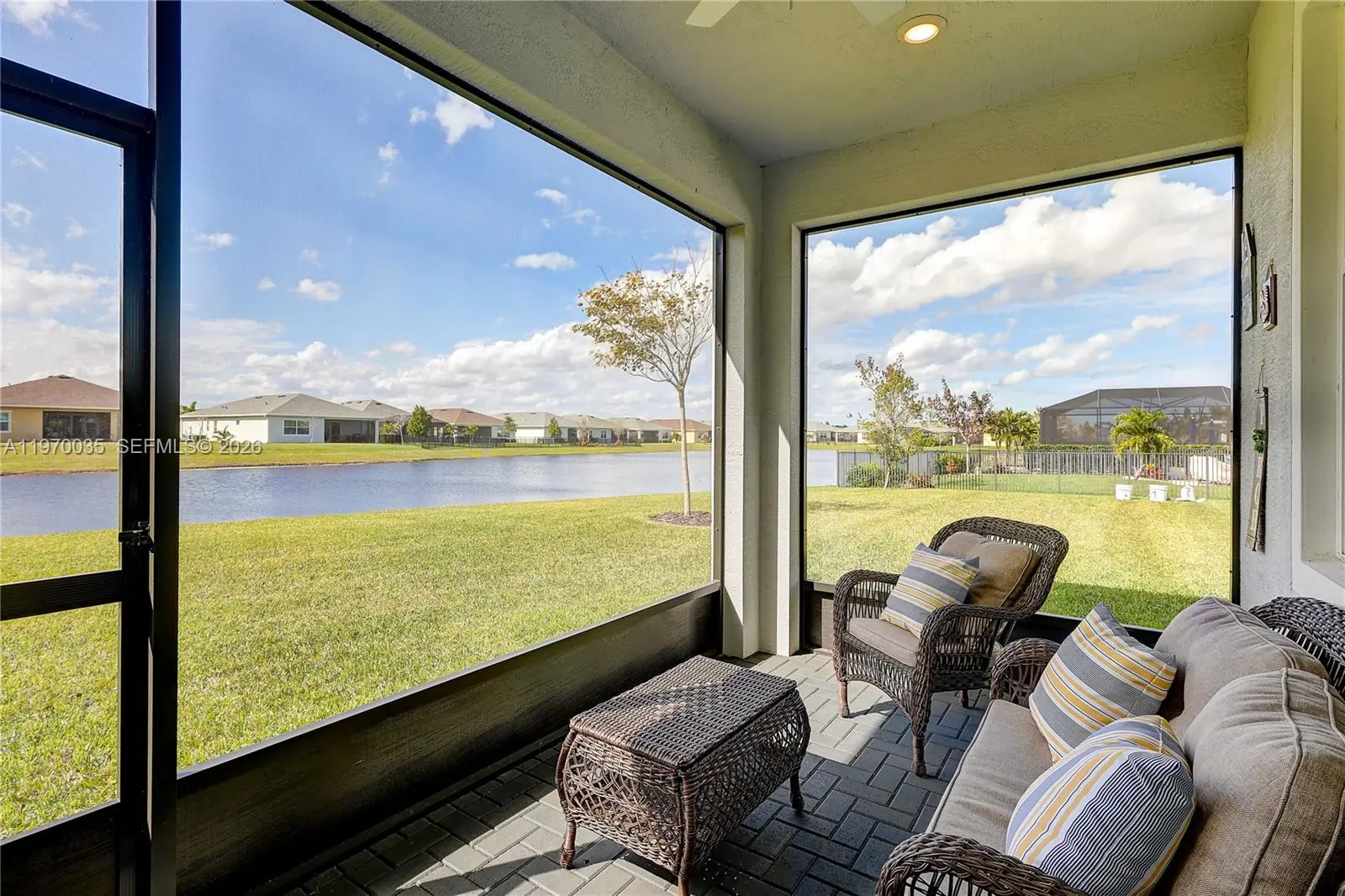 Beautifully maintained home in a sought-after 55+ gated community offering true resort-style living. This light and bright residence features an open-concept floor plan designed for both everyday comfort and effortless entertaining. The spacious living and dining areas flow seamlessly into a well-appointed kitchen with quality cabinetry, generous counter space, and a functional layout perfect for hosting family and friends. The primary suite serves as a private retreat with ample closet space and a spacious bath. Secondary bedrooms offer flexibility for guests, a home office, or hobby room. Enjoy peaceful mornings or relaxing evenings in your private outdoor space, ideal for embracing the Florida lifestyle year-round. Community amenities include a stunning clubhouse, resort-style pool, fitness center, pickleball and tennis courts, and an active social calendar. Low-maintenance living allows you to enjoy more and worry less. Conveniently located near shopping, dining, golf, and major highways. Move-in ready and shows beautifully.