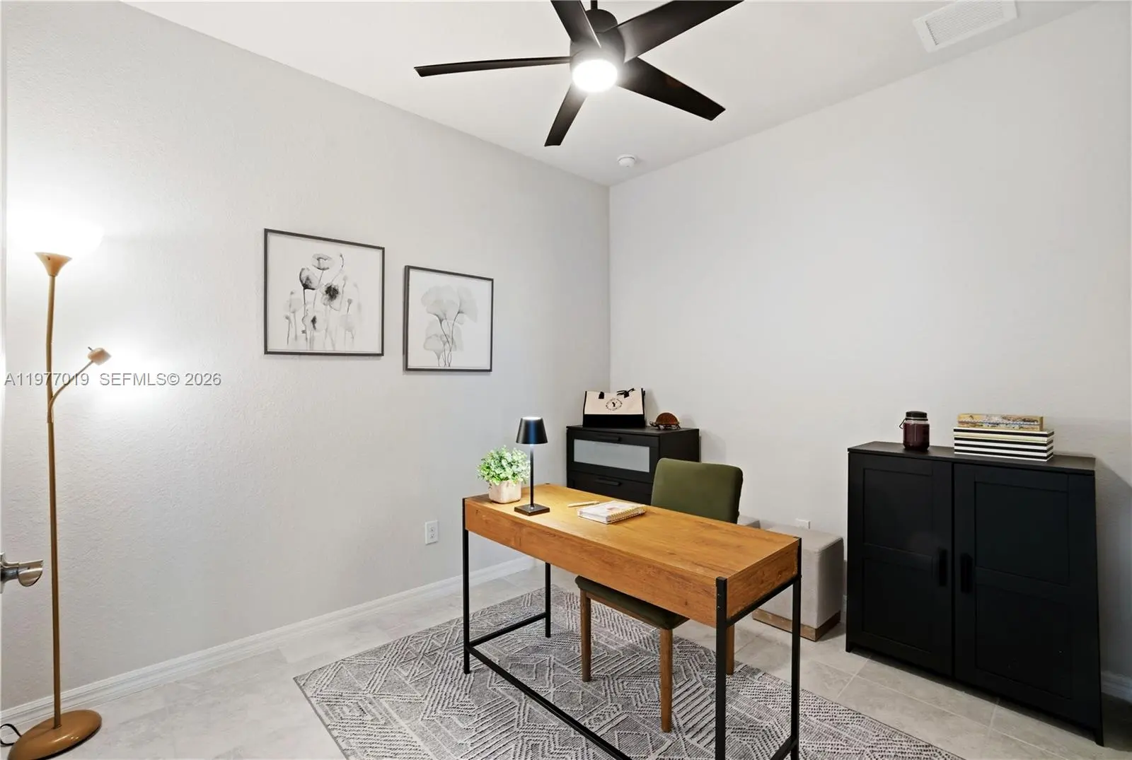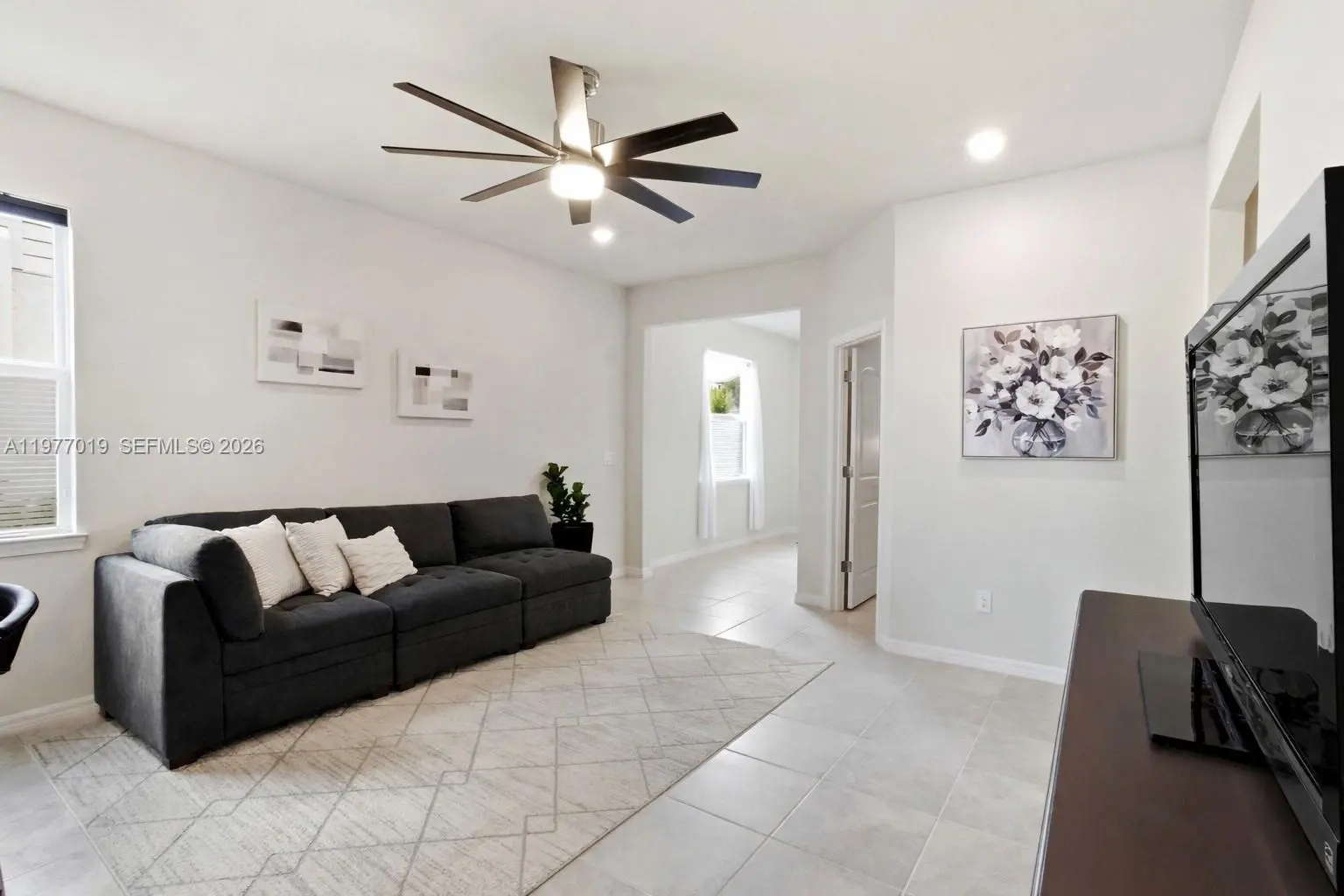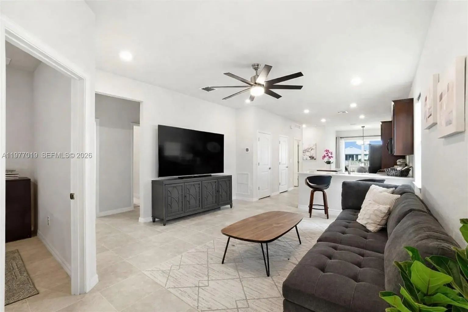 Impeccably maintained 3-bedroom, 2-bath residence with a versatile flex room located in the highly sought-after community of Heron Preserve at Tradition. This thoughtfully designed energy-efficient smart home shows like a model and looks virtually brand new, featuring impact-resistant windows and doors and a bright open-concept layout filled with abundant natural light. The spacious kitchen is appointed with 42-inch cabinetry, quartz countertops, a large center island, gas cooking, and a dedicated area perfect for a coffee or beverage bar. It flows seamlessly into the living and dining areas, creating an ideal space for both everyday living and entertaining. The primary suite offers a walk-in closet, newly installed carpeting, and an ensuite bathroom with dual vanities. Two additional bedrooms provide comfortable accommodations for family or guests, while the flex space is perfect for a home office, den, or playroom. Enjoy relaxing outdoor living on the covered, screened lanai overlooking a preserve with no rear neighbors, offering both privacy and a tranquil setting. The gated community offers resort-style amenities including a pool, playground, lawn maintenance, and the convenience of cable and high-speed internet included. Residents also enjoy convenient access to shopping, dining, parks, hospitals, major highways, and nearby beaches. Move-in ready this home offers modern comfort, energy efficiency, and privacy in one of Tradition’s most desirable communities.