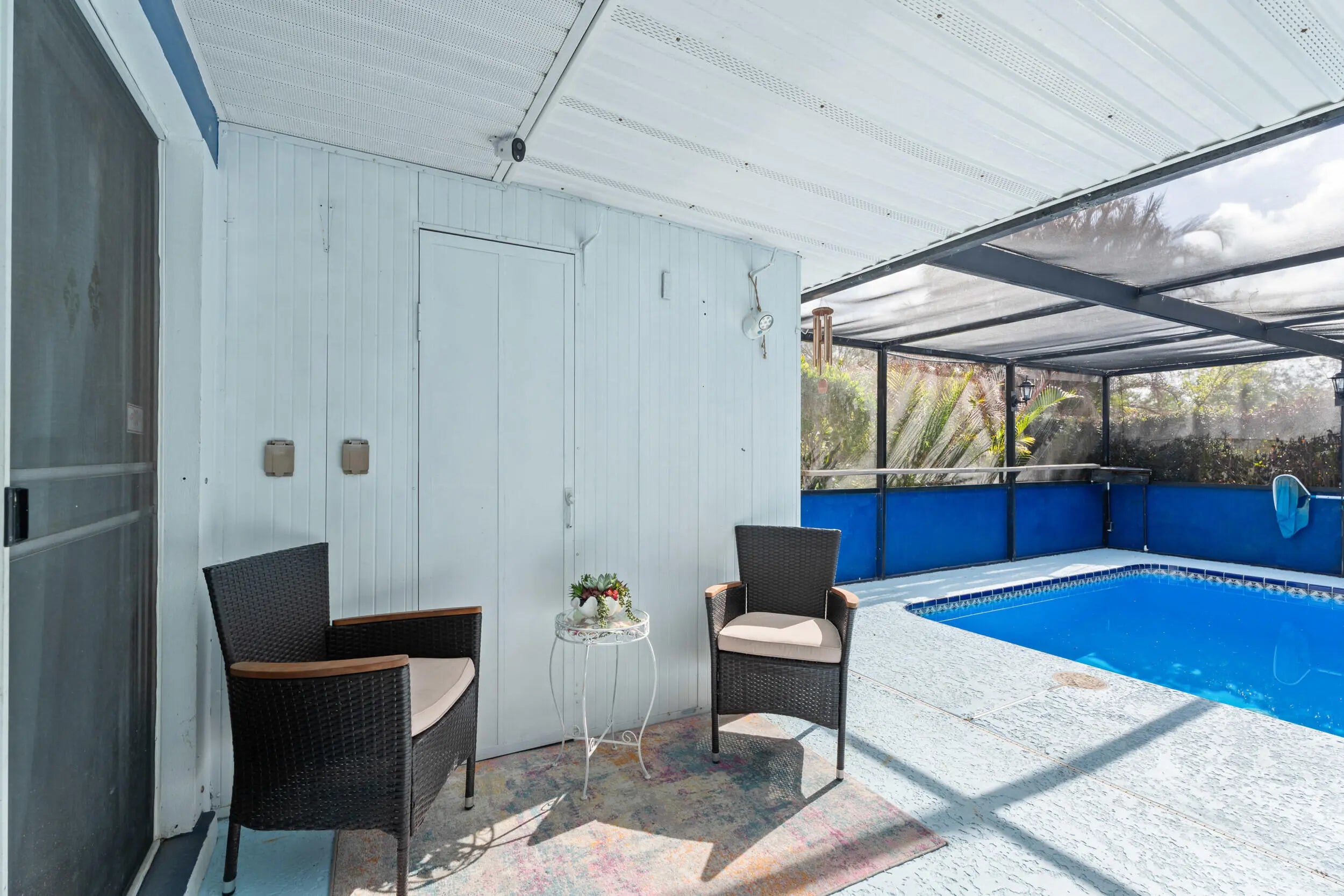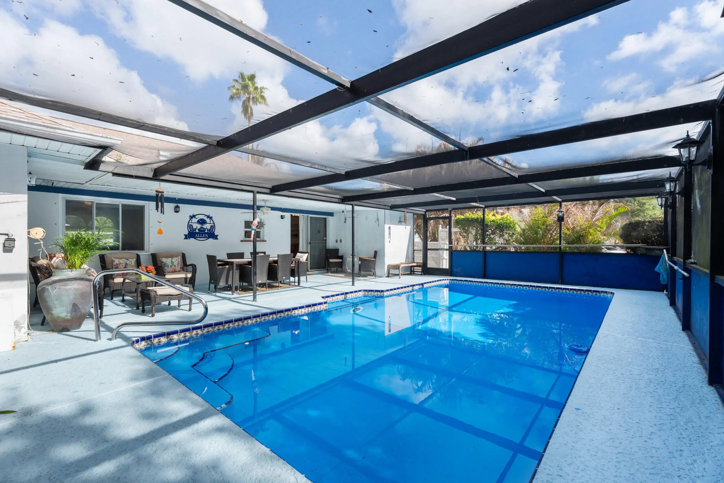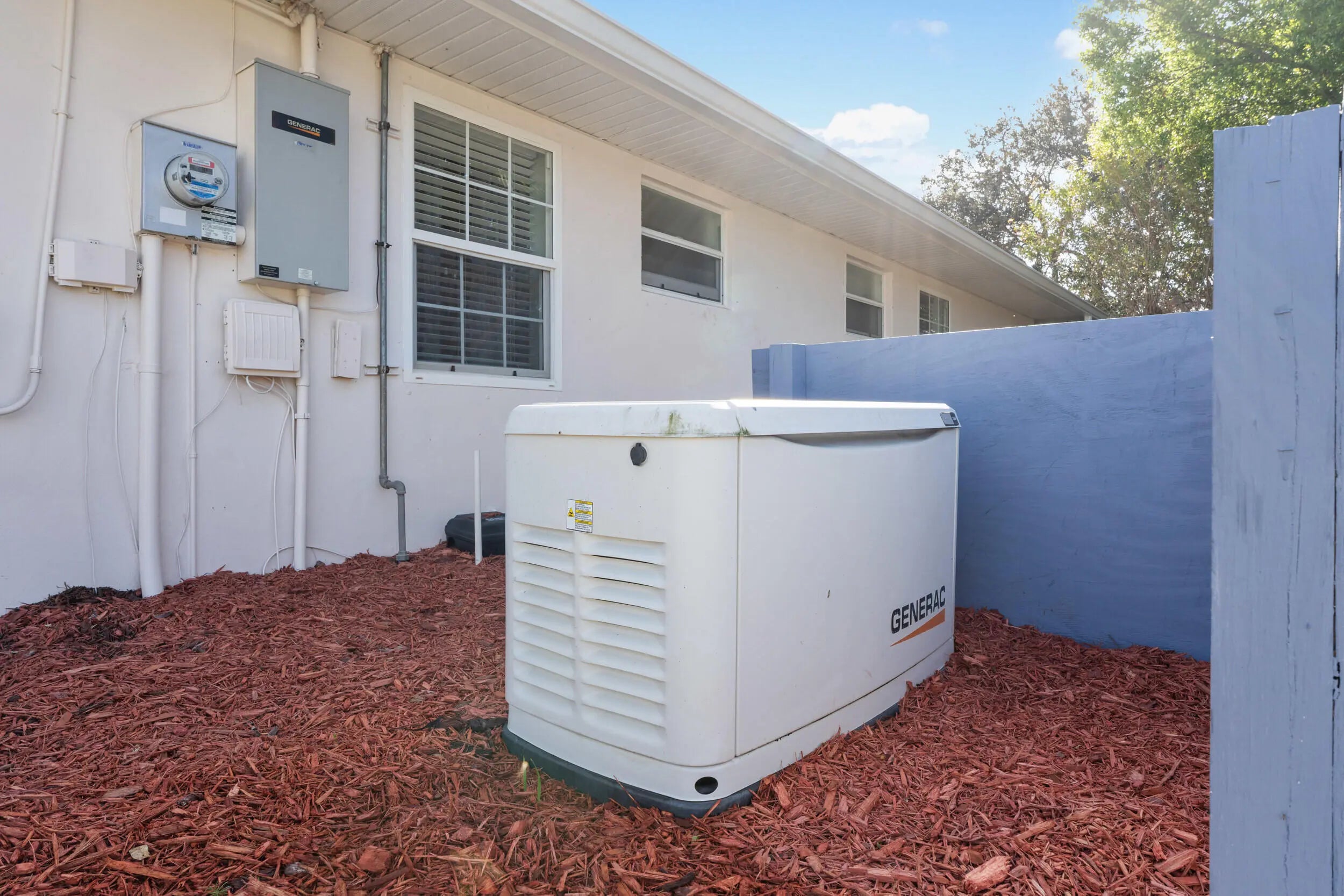 BACK ON MARKET AT A NEW PRICE! Experience the ultimate freedom of homeownership with county-only taxes and NO HOA. This CBS "coastal cottage" sits on an oversized corner lot. Features include a 2023 roof, screened-in pool with a new pump (2025), and rare dedicated parking for a boat/RV! Inside, enjoy an open floor plan with no carpet, an updated white kitchen with a gas stove, and a guest room with en-suite access—acting as a second primary. Peace of mind is built-in with a whole-house Generac generator & 2021 water heater. The garage includes a workshop & extra fridge. Located in a sidewalk-lined community on city water/sewer, with a private well for sprinklers. Priced aggressively at $339,000 for a seamless As-Is sale!