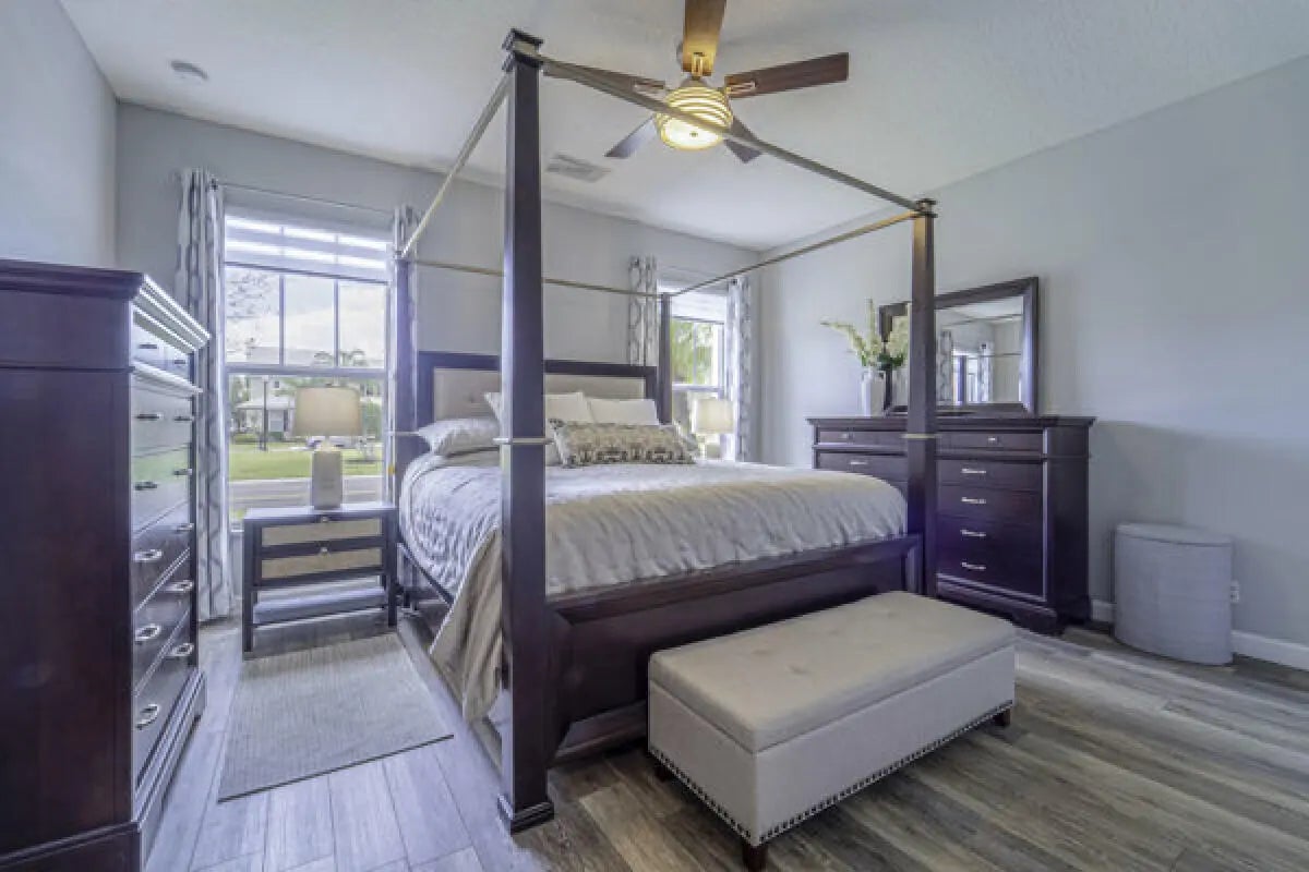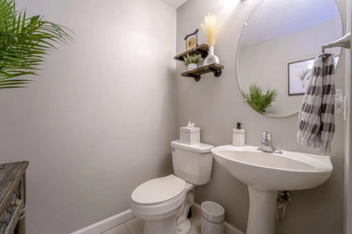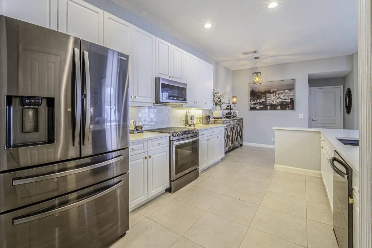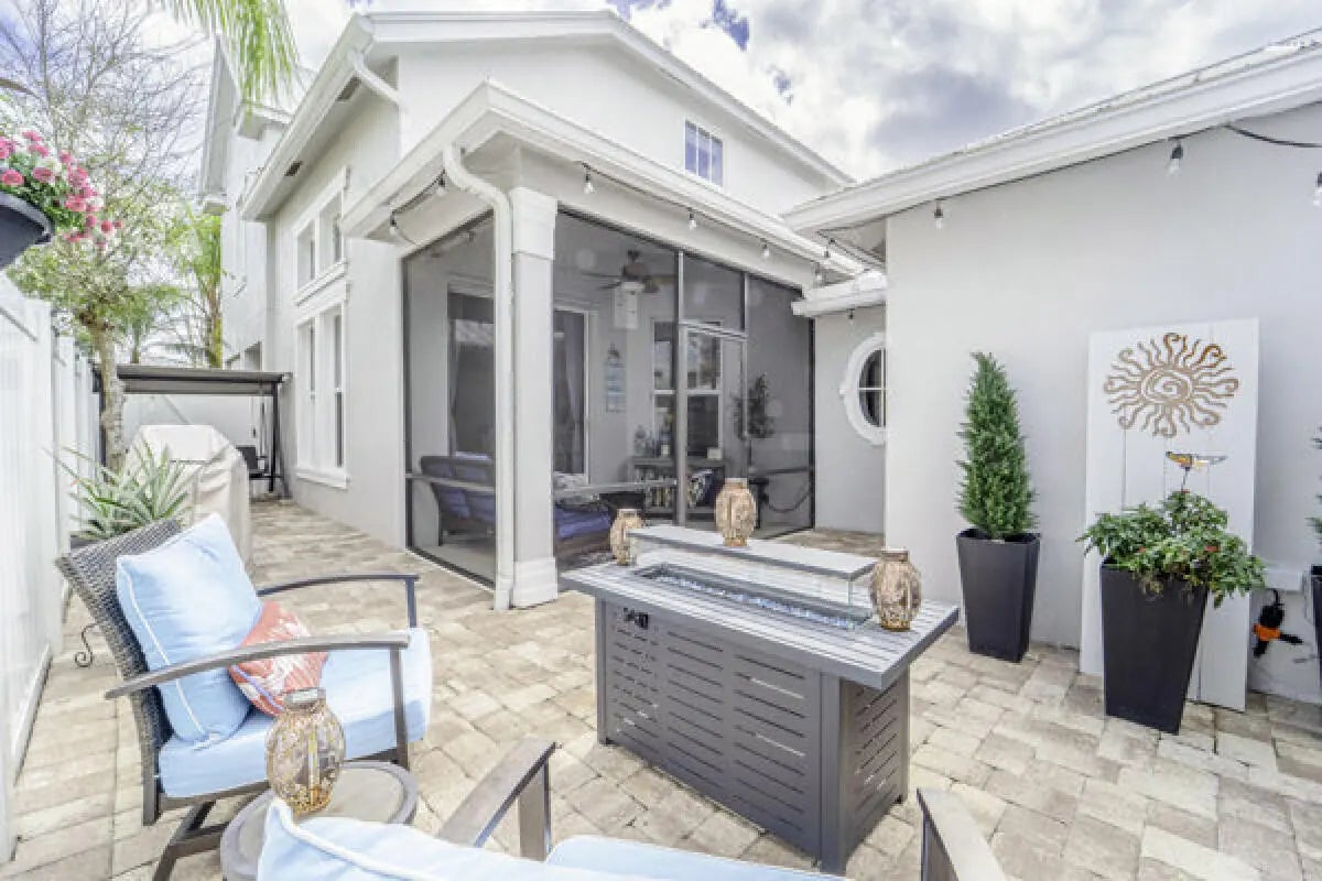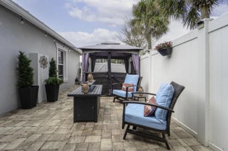 Your opportunity to own in the heart of Tradition in the desired subdivision of Bedford Park "A Porch Community" This beautiful updated corner unit of 3 BR / 2.5 BA with the master bedroom suite on the 1st floor. Walk and built-in closet with waterproof vinyl flooring. No carpets, Ceramic and Vinyl flooring throughout. Updated white kitchen 42" cabinets with quartz countertops and stone backsplash. The living room has 25' ceilings which brings in an abundance of light. The 2nd floor boasts a large loft area with 2 bedrooms and a full bathroom. Attached 2 car garage in the rear of the property. Metal roof which is covered by the HOA and hurricane resistant impact glass. Yard is completely fenced off with pavers and screened covered patio, great for entertainment, pets, children and more. Easy walking distance to the club house, pool, shopping, restaurants and schools. No Tradition CDD! Call today for your VIP viewing! Gas Water Heater 2023 - Air Conditioner 2020
