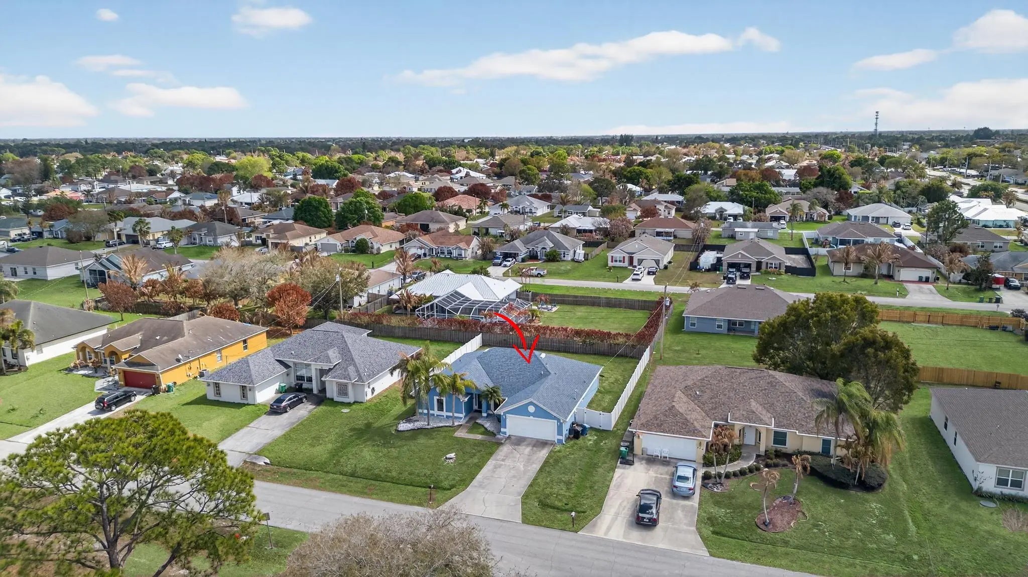 Light, bright, and move-in ready, this beautifully maintained 4-bedroom, 3-bath home with a den is ideally located in Port St. Lucie just minutes from the Crosstown Parkway and within walking distance to nearby schools. The home features soaring vaulted ceilings and a desirable split-bedroom floor plan designed for both comfort and privacy. The spacious primary suite offers a relaxing retreat, while bedrooms two and three share a Jack and Jill bathroom. A versatile den or office provides additional flexible space for a home office, hobby room, or extra living area. The kitchen is equipped with stainless steel appliances installed in 2022. Major updates include a new roof in 2022, impact windows installed in 2023, and a new AC system in 2025. The property also features a spacious lot with large fenced yard offering plenty of room to enjoy the outdoors.