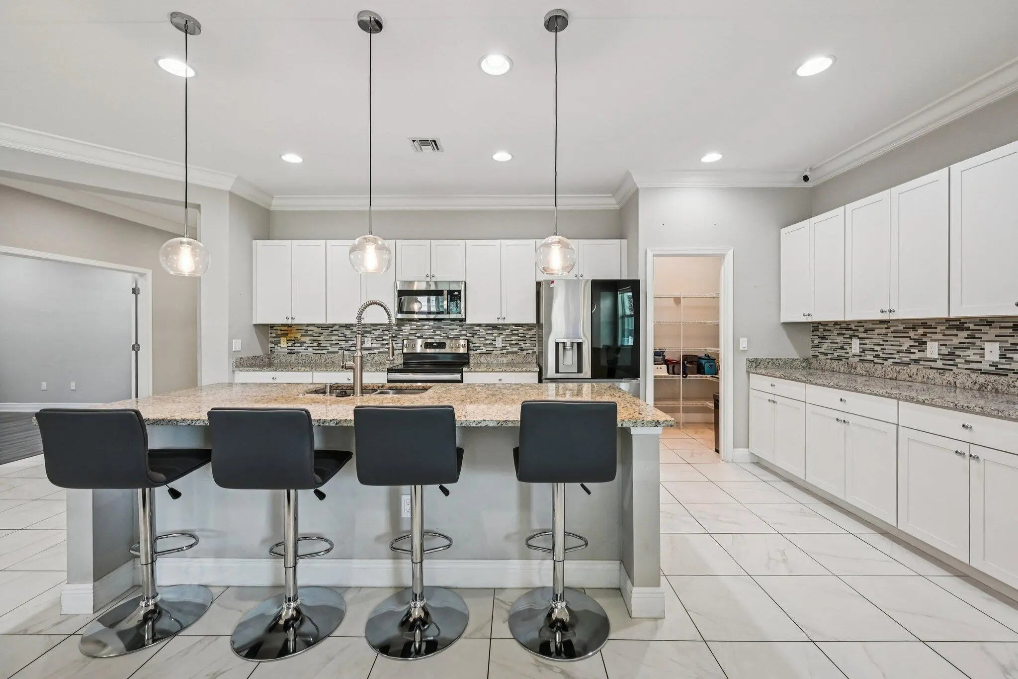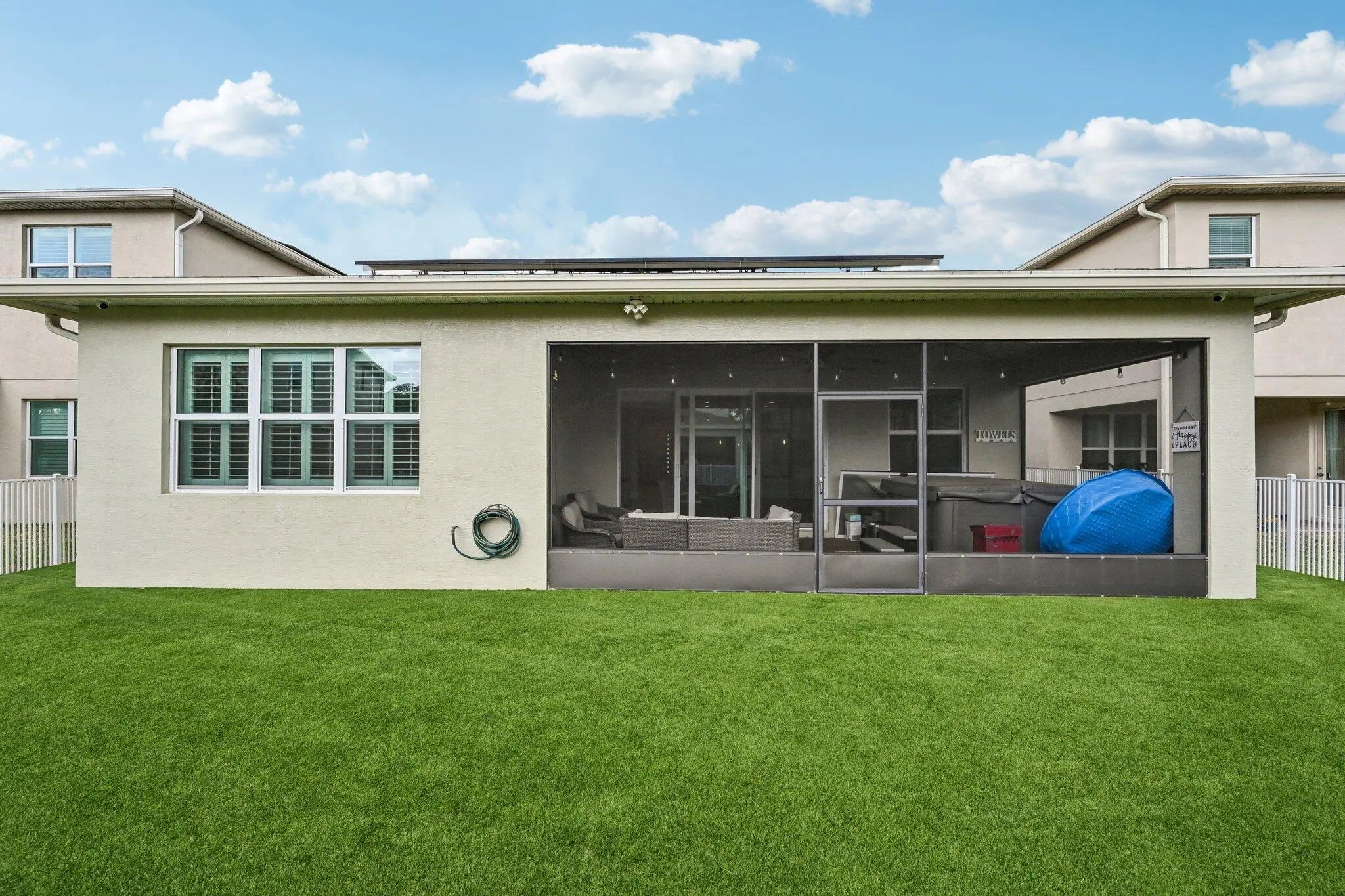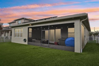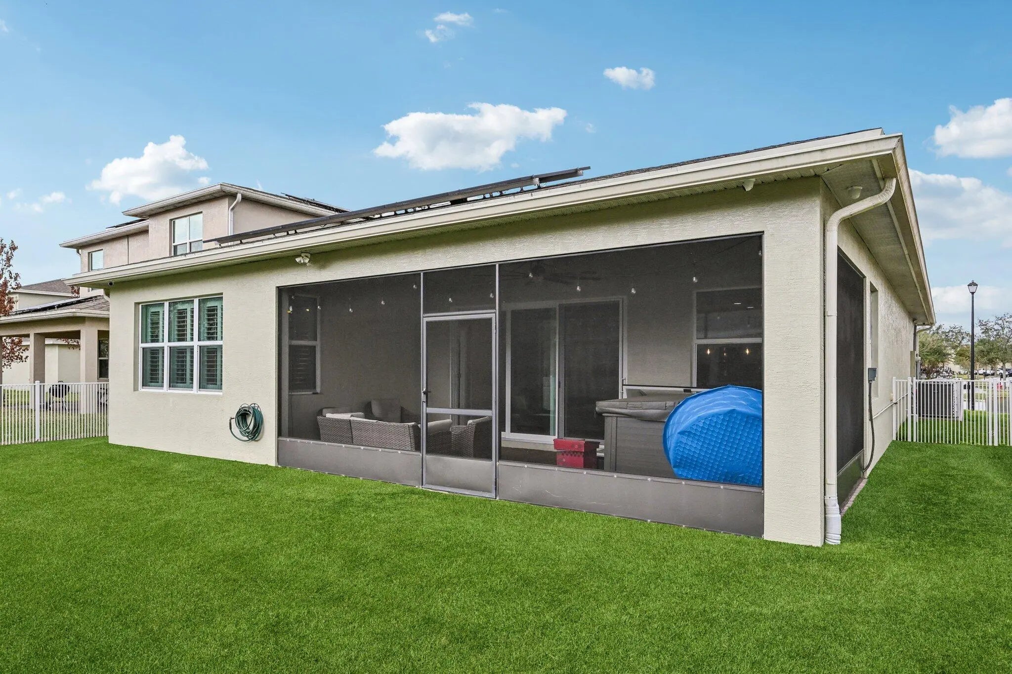 ONE STORY*IMPACT Windows & Doors Complete*Solar Panels*SOLAR WHOLE HOUSE GENERATOR (Elec bill runs $50/month*FPL EV Charging Station*EMP Shield*THERMOSPA Designer Series w/massage system*Screened Patio*Fenced backyard with Artificial Premium "Pet Turf" with drainage*Gutters*Front Landscape Lighting*4 SMART TVs+Soundbars+Mounts*2024 New LG Frig+KitchenAid DW+Maytag W/D*Tile in main living & Vinyl Waterproof plank floors in bedrooms*Crown Molding throughout*5 Designer Ceiling Fans*Designer Light Fixtures*Lutron smart switches & dimmers*31 High Hats*Sensi Smart Thermostat*HOA Monitored Security System*Push button entry*8 Dome Cameras wi/recording & audio*Ring Doorbell & Cameras*Smart lighting*Floodlights*Plantation Shutters & Blinds* GREAT HOME & GREAT DEAL that is loaded with fabulous extras that will please your buyer(s). The solar panels create the electricity for the DAILY & Tesla Battery Power Station provides electric at night, up to 12 hours (depending on usage*Recharged the next day! Best of all, it's noiseless & seemless, it just happens! Monthly electric bill is $50. If an EV charger is needed, that has been installed too by FPL, and any EV can use it-$35 per month to charge vehicle(s, if not needed, it can be discontinued. THERMOSPA on patio is a theraputic spa, which massages aches and pains away, and is large enough for 4-5 adults, and it's quiet too! The kitchen has a pantry, granite counters & tile backsplash. Electric & Plumbing has been upgraded in the garage-Two water spigots (cold & hot) great for pressure washing a vehicle. 20 Amp circuit outlet provides more power, garage storage racks, builder's frig stays. The lights, the thermostat, ceiling fans, the sprinklers, all can be controlled through an App. The Guest Bathroom toilet was replaced with a $625 Tall height pressure assisted 2 piece elongated toilet with a soft-close seat. The TV's that are being left include 3 - 55" TV's in the Master, Guest bedroom & Office, and a 65" TV in the Living Room. All are wall mounted with soundbars, It has been meticulously maintained. This is the Catalina plan, with the following options: upgraded stacked stone front, IMPACT GLASS Windows & Doors throughout, double doors for the 3rd bedroom/Office, with a Laundry Tub, fully tiled throughout, except for bedrooms (the seller installed wood-look vinyl waterproof flooring in the bedrooms). The builder provided 19 lights, and the seller installed 12 additional ones, 4 in each beroom. VIZCAYA FALLS $412/mo HOA covers CABLE+HI SPEED INTERNET+ENTRY GATE & SECURITY PATROL, PHONE LINE, SEC SYS MONITORING THRU APP+MORE+AMENITIES: Clubhouse, Pool, Tennis, Gym, Game Rm, Kids Playground & Water Pad, Basketball & Sand Volley ball court, sand beach at lake+more!