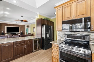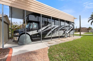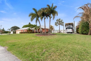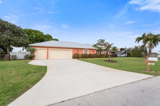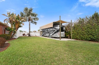This rare custom built CBS pool home sits on a beautifully landscaped half acre lot with covered RV storage, shed & fenced yard + NEW Hurricane Impact Windows (2025) & Standing seam metal roof (2019). The spacious living room opens onto the covered porch and screened pool enclosure with cabana bath. Tray ceilings and crown molding add to the custom look of this beautiful home. Primary suite features separate shower and tub and double walk in closets. Secondary suite with shower and privacy. Updated kitchen with wine fridge, stainless appliances, and extra storage. The 2 1/2 car garage leaves plenty of room for a work area, storage or golf cart. NO HOA- BRING YOUR TOYS! Located on a quiet street off Becker Road for easy access to Tradition & I-95 for commuting. Close to shopping....... beaches (only 20 minutes away), restaurants, hospital and more.