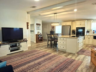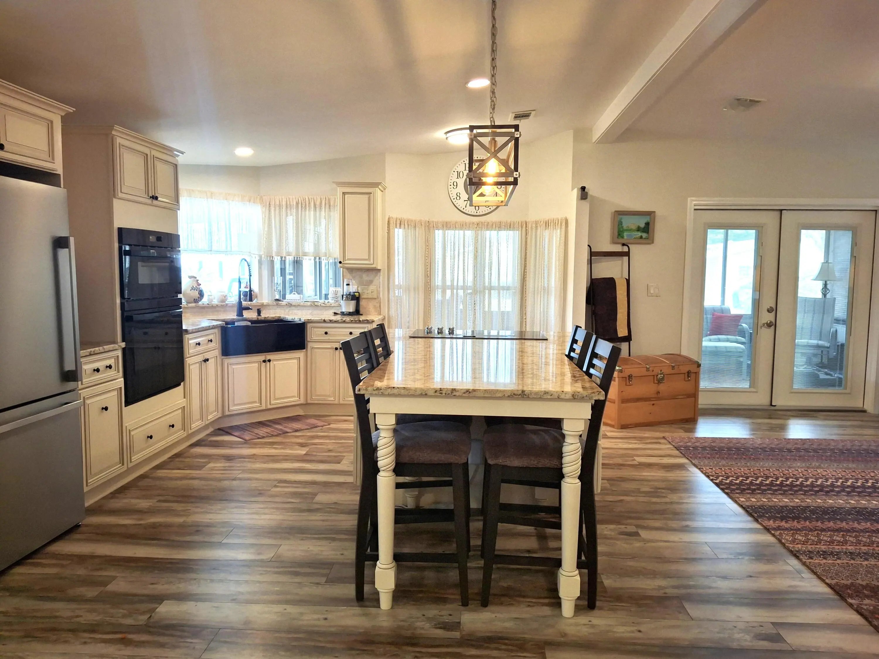 Stunning, remodeled 2-bedroom, 2-bath home located on a quiet cul-de-sac, offering modern upgrades and move-in-ready convenience. The beautifully updated chef's eat-in kitchen features elegant granite countertops, soft-close drawers, and stainless steel appliances, perfect for everyday living and entertaining. This home also boasts remodeled bathrooms, luxury vinyl plank flooring in the main areas and a spacious 24x10 air-conditioned lanai, ideal for relaxing year-round. Additional storage is provided by a super-sized 16x12 shed, which can store the included lithium-battery golf cart. Recent major upgrades include a new metal roof (2021) and new A/C system (2023). The property is sold partially furnished, making it even easier to settle in.