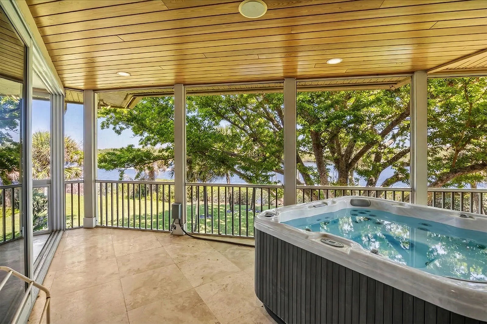 The Peninsula Estate is gracefully set upon more than an acre of land with approximately 650 feet of extraordinary water frontage, offering one of the most private and captivating waterfront settings along Florida's coveted Treasure Coast. Positioned on a rare peninsula within the exclusive gated community of Bay St. Lucie, the property is surrounded by sweeping panoramic views of the St. Lucie River, creating the feeling of a secluded island retreat. The residence encompasses over 8,467 square feet of refined living space, thoughtfully designed to capture the beauty of its surroundings. Elegant marble flooring, expansive living and entertaining areas, a gourmet kitchen, and a distinguished library with fireplace reflect both comfort and sophistication. Walls of glass frame spectacular .. river vistas from nearly every room, seamlessly connecting the interior spaces with the serene waterfront landscape. A separate guest residence offers private accommodations ideal for extended family or visiting guests. The estate's expansive grounds and remarkable peninsula setting present exceptional possibilities for a private family compound, executive retreat, or luxury waterfront sanctuary. Outdoors, a private docks w/30,000 & 10,000lb boat lifts and resort-style pool overlook the tranquil waters of the St. Lucie River, completing this extraordinary waterfront offering. The Peninsula Estate represents a rare legacy property where privacy, scale, and natural beauty converge. Additional details and property information available in the MLS.