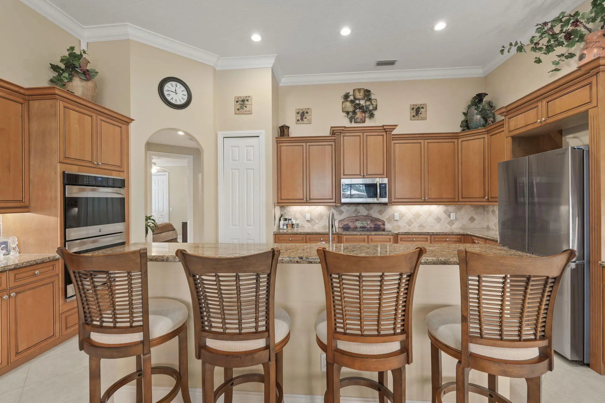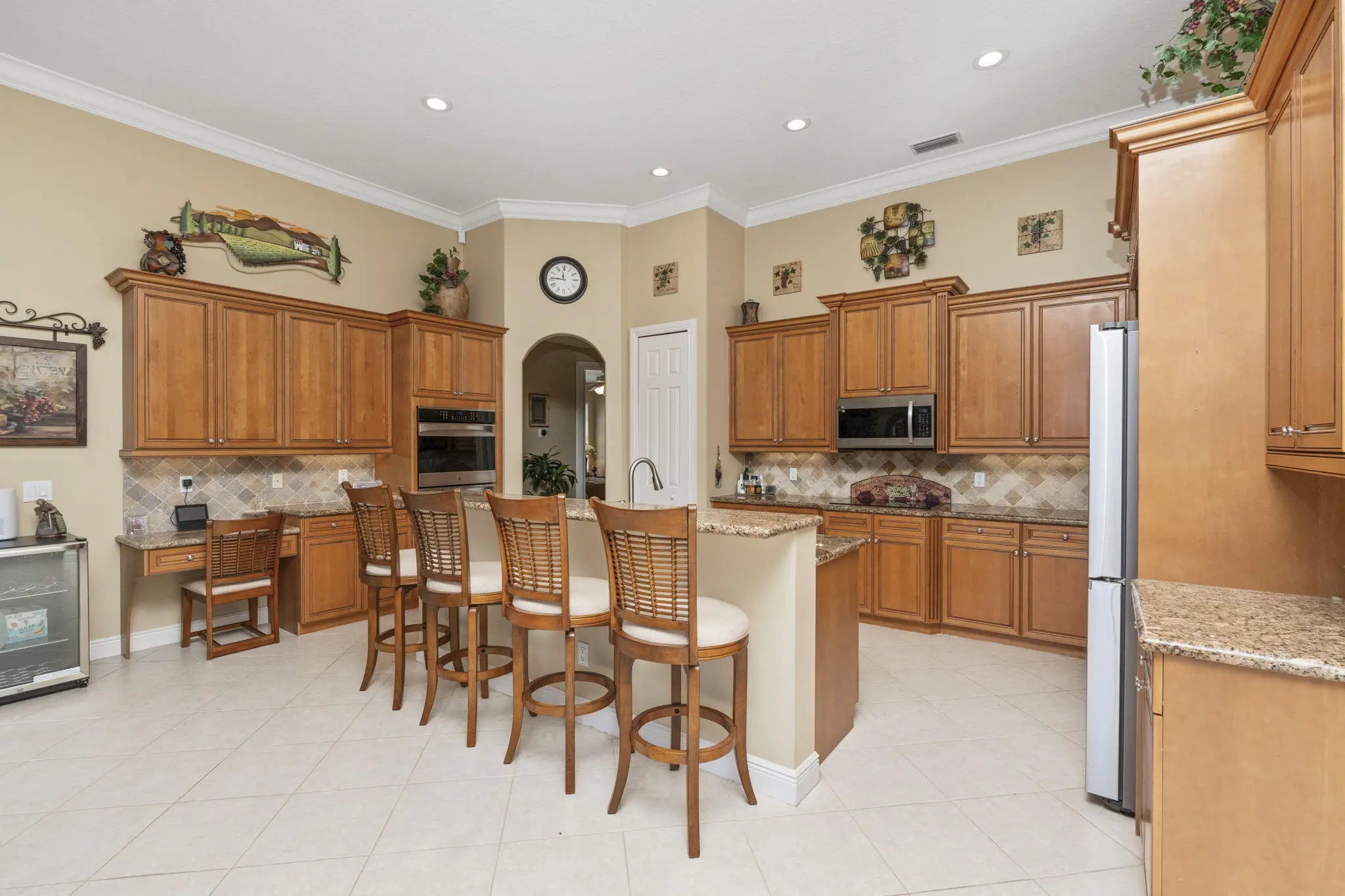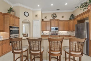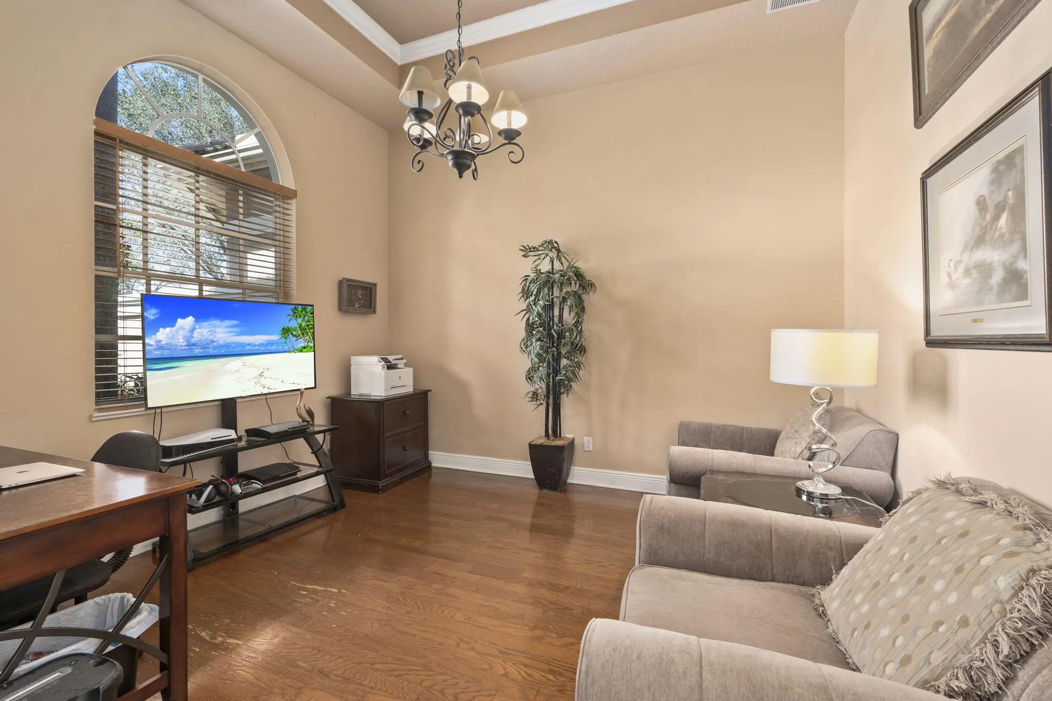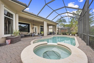 Welcome to luxury golf course living in the prestigious PGA Village. Located in the exclusive Laurels neighborhood, this custom estate offers 4 bedrooms, 4 baths, a private office, and private Gym with approximately 3,977 sq ft of living space on a .58-acre golf and lake view lot. Built in 2003, the home features a grand circular paver driveway, 3.5-car garage, high ceilings, hardwood and tile flooring, and an expansive gourmet kitchen with granite countertops and custom cabinetry. The outdoor living space showcases an oversized screened paver patio with a resort-style pool and spa with waterfalls. PGA Village offers three championship golf courses PGA Village Golf Club Wanamaker Course, PGA Village Golf Club Ryder Course, and PGA Village Golf Club Dye Course plus world-class amenities