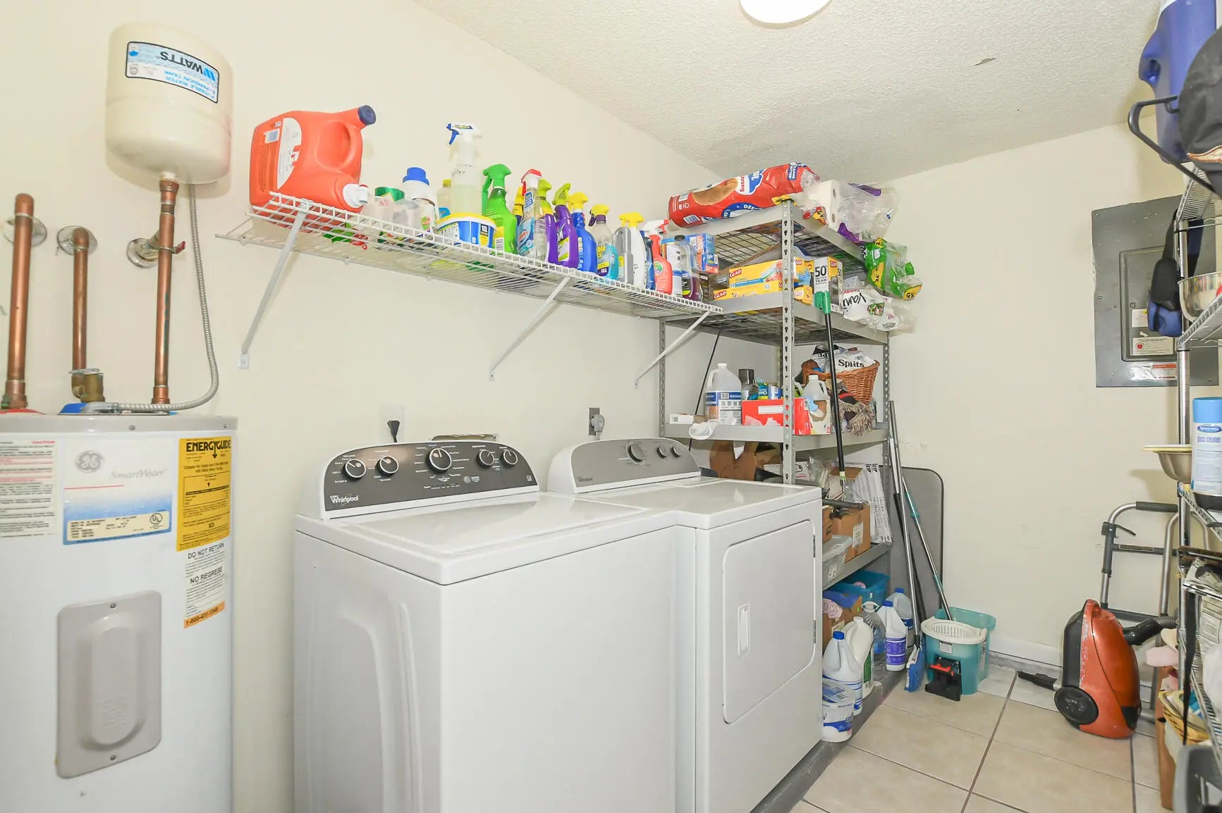 Electric Water Heater, Dryer, Disposal, Dishwasher, Electric Range, Microwave, Refrigerator, Water Heater, Washer