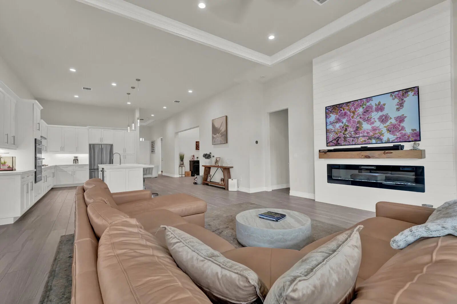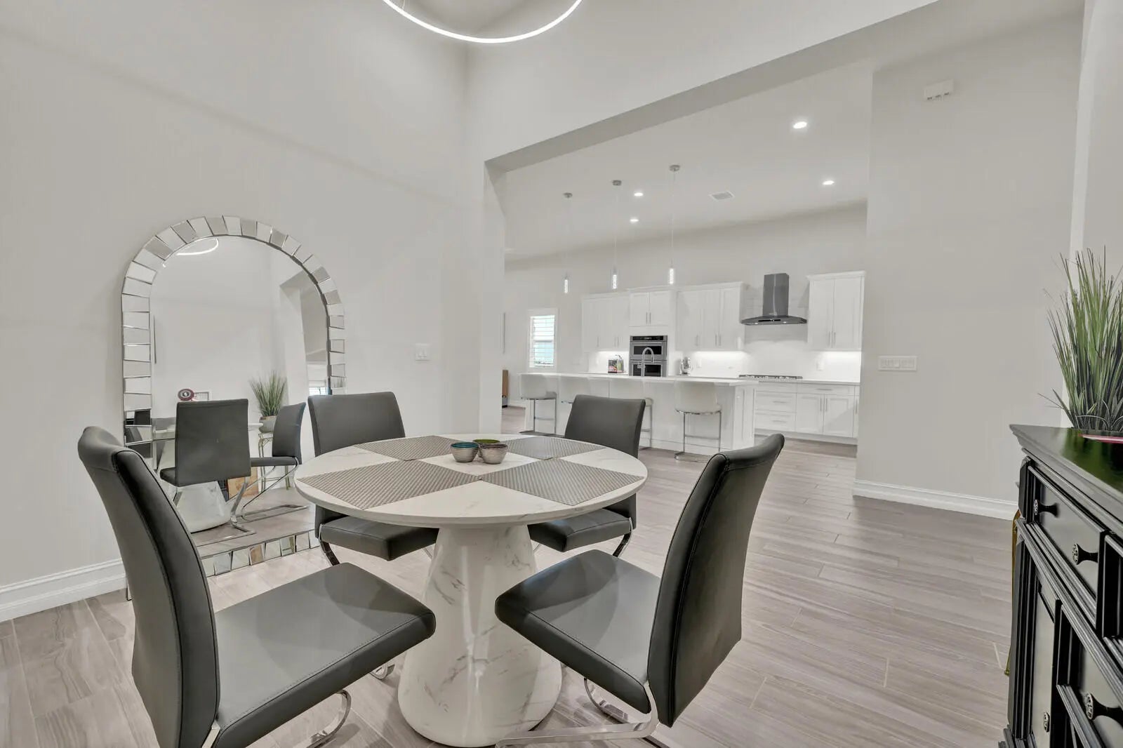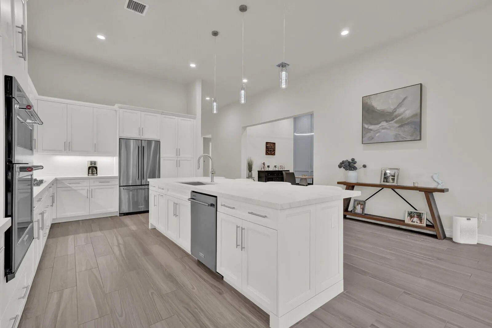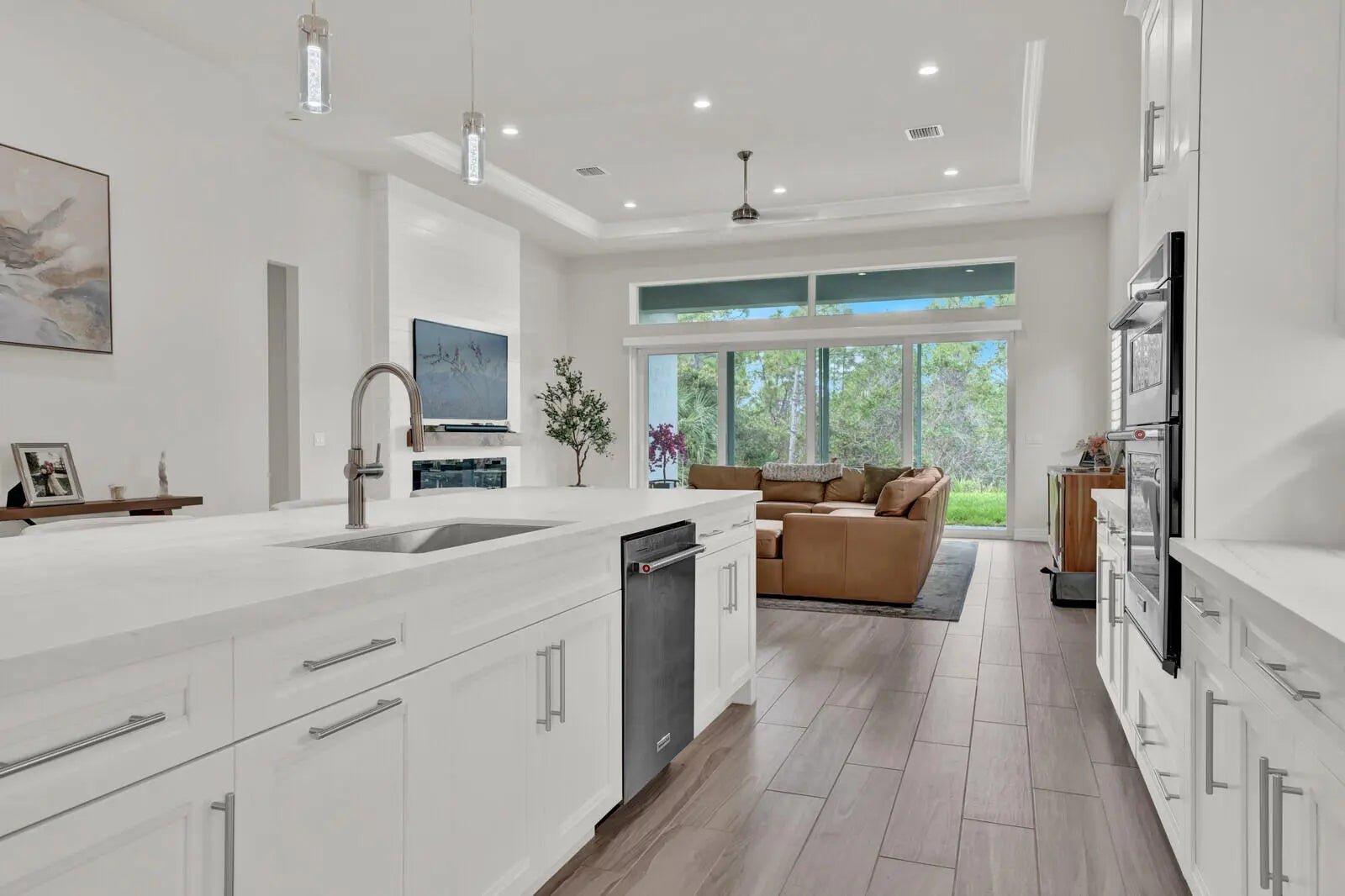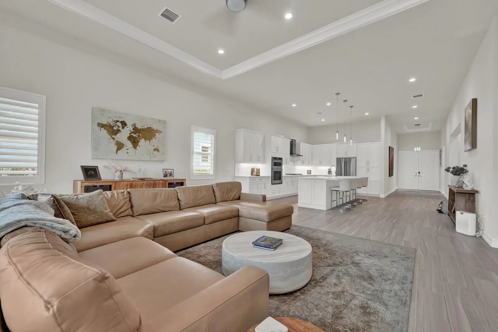 Located in the premier gated golf community of Tesoro Club, this like-new Toll Brothers residence, completed in 2024, offers exceptional design, quality craftsmanship, and over $175,000 in upgrades. This expansive single-story home features 2,807 square feet of living space with 3 bedrooms, 2.5 bathrooms, two dedicated offices, and an extended 2-car garage that has been lengthened by 4 feet. One of the offices can easily serve as a fourth bedroom, offering flexibility for guests or additional living needs. The primary suite has been extended an additional 4 feet, creating a spacious retreat complete with two custom-built closets and a spa-like en-suite bathroom designed for comfort and luxury. At the heart of the home, the gourmet kitchen features upgraded cabinetry, premium KitchenAid appliances, striking Dekton countertops, and an open layout that flows seamlessly into the family room—perfect for both everyday living and entertaining. A second office was thoughtfully added, making the home ideal for multiple remote professionals or buyers seeking additional flexible space. Residents of Tesoro Club enjoy a relaxed country club lifestyle with a beautifully renovated clubhouse, resort-style pool, pickleball and tennis courts, fine dining, and a premier golf experience. The Tesoro Club Palmer Course has been fully renovated, while the Tesoro Club Watson Course is currently undergoing renovation. Conveniently located just 30 minutes from Jupiter and approximately 45 minutes from Palm Beach International Airport, Tesoro Club offers the perfect balance of luxury living and accessibility.