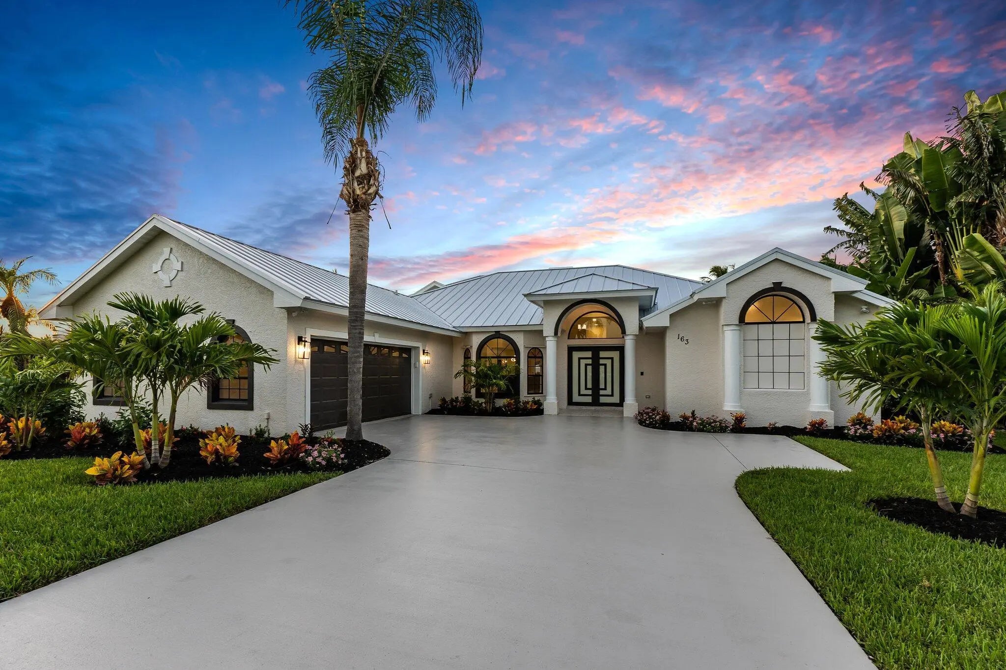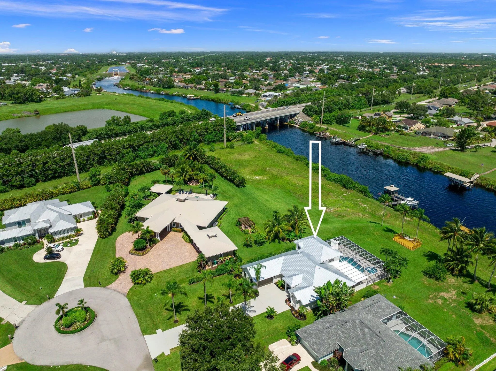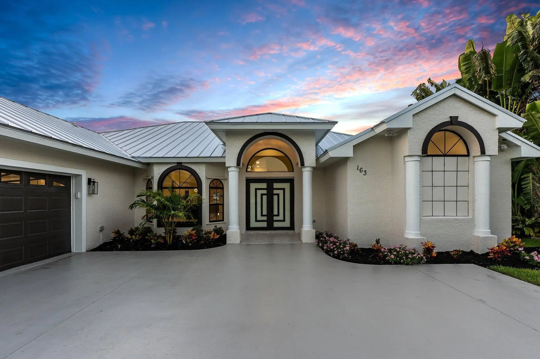 Stunning REMODELED home is a costal contemporary architecture blend of highly desirable finishes & details! This exceptional waterfront home shows like a Model! Details include New Metal Roof, 1/2 acre lot with great curb appeal & exceptional setting! Impressive 5 Bedrooms, 2 Baths, 2.5 Car Garage & fabulous outside area boasting screen enclosed resurfaced pool with spa, travertine decking, party deck & private dock overlooking breathtaking water views. Just a short boat ride to Ocean Access. Gated community with only 34 private homes is a hidden secret & real gem! Beautiful double door entrance, luxury open concept, volume ceilings & 48 x 24 gorgeous porcelain tile sets off the tone of this home. Fabulous Gourmet kitchen, featuring 15 x 15 quartz island & backsplash. This Chef's kitchen includes Gas Cooktop, custom cabinetry, pop up smartphone charges in island, wine cooler, wall oven & recessed LED Lights perfect for entertaining & the heart of the home. Dramatic Formal living Room, Dining Room, family room with an elegant Coral fireplace & flex room perfect for a bar, pool table or just gracious living whether entertaining family & friends with sliding glass door, natural lighting & stunning Views. This home is for the most discriminating buyer! Grand Master Suite offers split floor plan & the tranquil timeless SPA LIKE master bathroom boasts raised Vanity Cabinets, dual sinks, waterfall bathroom faucets, 14 foot Luxury Sports Shower & stand alone bathtub. Upstairs you will find 5th bedroom or private space with a walk out balcony overlooking the beautiful waterway canal. When you think about Florida Living you will love the outdoor space! The tropical oasis will give you privacy, tranquility & Joy. Bring you boat & slow down to the pace you have been looking for & the lifestyle you want! Roof 2024, 2 New A/C units & Garage is 2 plus golf cart garage space or storage space with fabulous epoxy flooring.