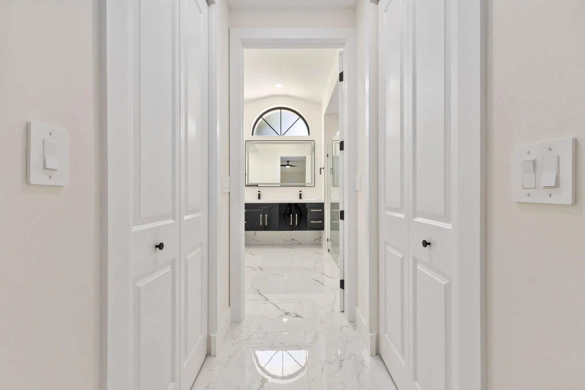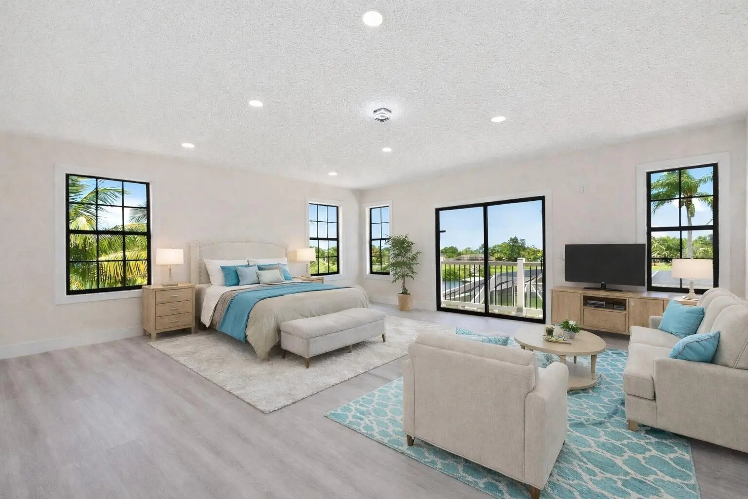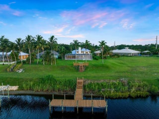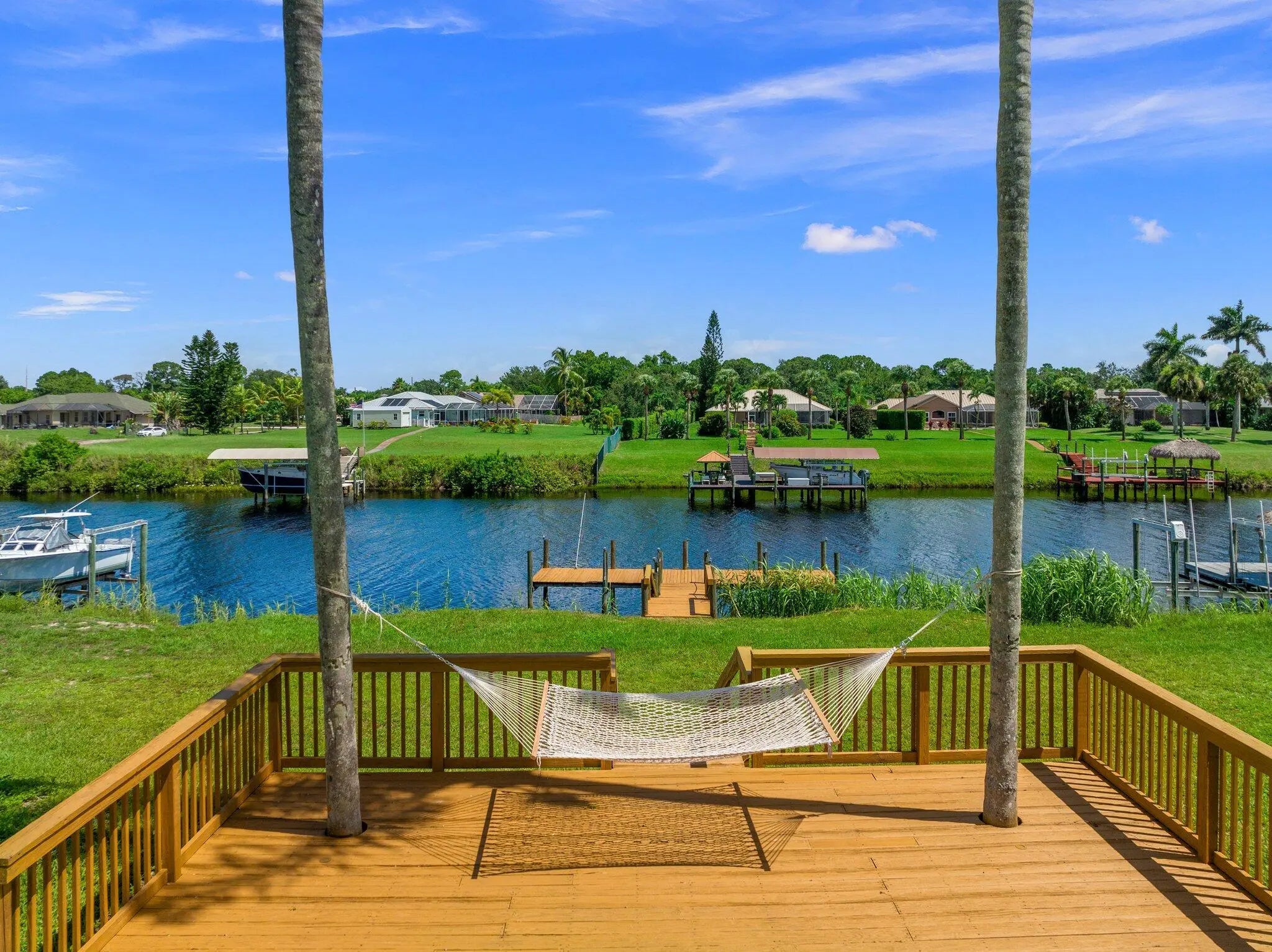 Stunning REMODELED home is a costal contemporary architecture blend of highly desirable finishes & details! This exceptional waterfront home shows like a Model! Details include New Metal Roof, 1/2 acre lot with great curb appeal & exceptional setting! Impressive 5 Bedrooms, 2 Baths, 2.5 Car Garage & fabulous outside area boasting screen enclosed resurfaced pool with spa, travertine decking, party deck & private dock overlooking breathtaking water views. Just a short boat ride to Ocean Access. Gated community with only 34 private homes is a hidden secret & real gem! Beautiful double door entrance, luxury open concept, volume ceilings & 48 x 24 gorgeous porcelain tile sets off the tone of this home. Fabulous Gourmet kitchen, featuring 15 x 15 quartz island & backsplash. This Chef's kitchen includes Gas Cooktop, custom cabinetry, pop up smartphone charges in island, wine cooler, wall oven & recessed LED Lights perfect for entertaining & the heart of the home. Dramatic Formal living Room, Dining Room, family room with an elegant Coral fireplace & flex room perfect for a bar, pool table or just gracious living whether entertaining family & friends with sliding glass door, natural lighting & stunning Views. This home is for the most discriminating buyer! Grand Master Suite offers split floor plan & the tranquil timeless SPA LIKE master bathroom boasts raised Vanity Cabinets, dual sinks, waterfall bathroom faucets, 14 foot Luxury Sports Shower & stand alone bathtub. Upstairs you will find 5th bedroom or private space with a walk out balcony overlooking the beautiful waterway canal. When you think about Florida Living you will love the outdoor space! The tropical oasis will give you privacy, tranquility & Joy. Bring you boat & slow down to the pace you have been looking for & the lifestyle you want! Roof 2024, 2 New A/C units & Garage is 2 plus golf cart garage space or storage space with fabulous epoxy flooring.
