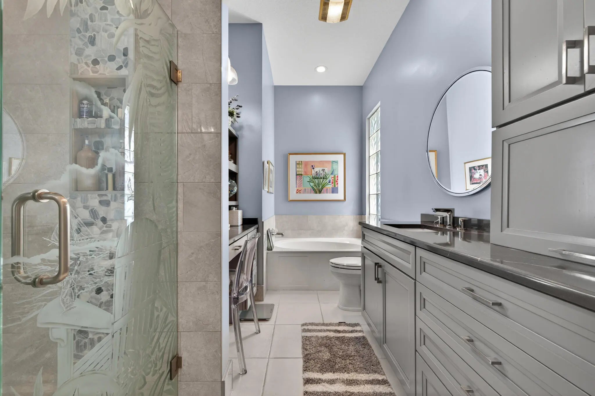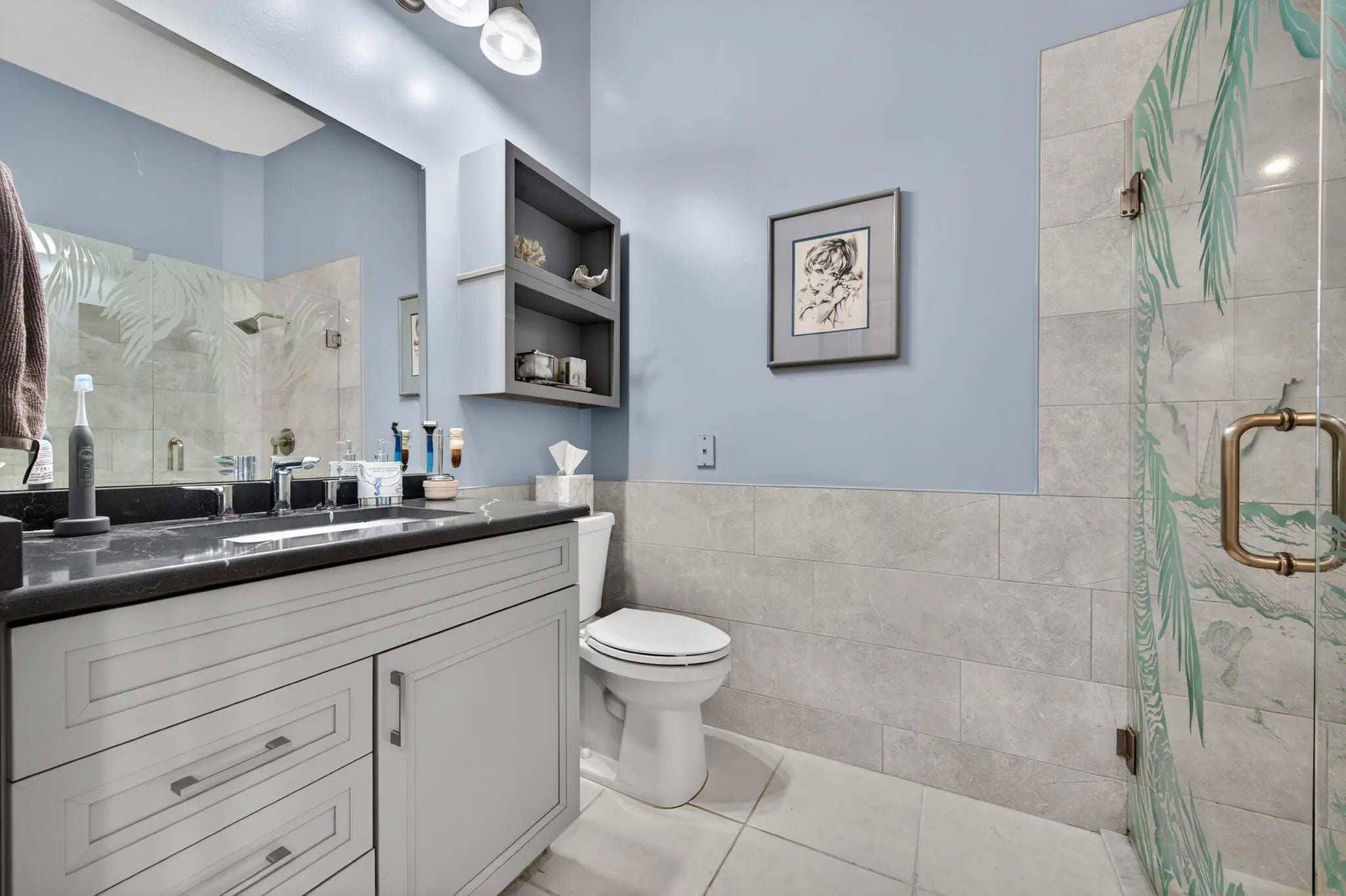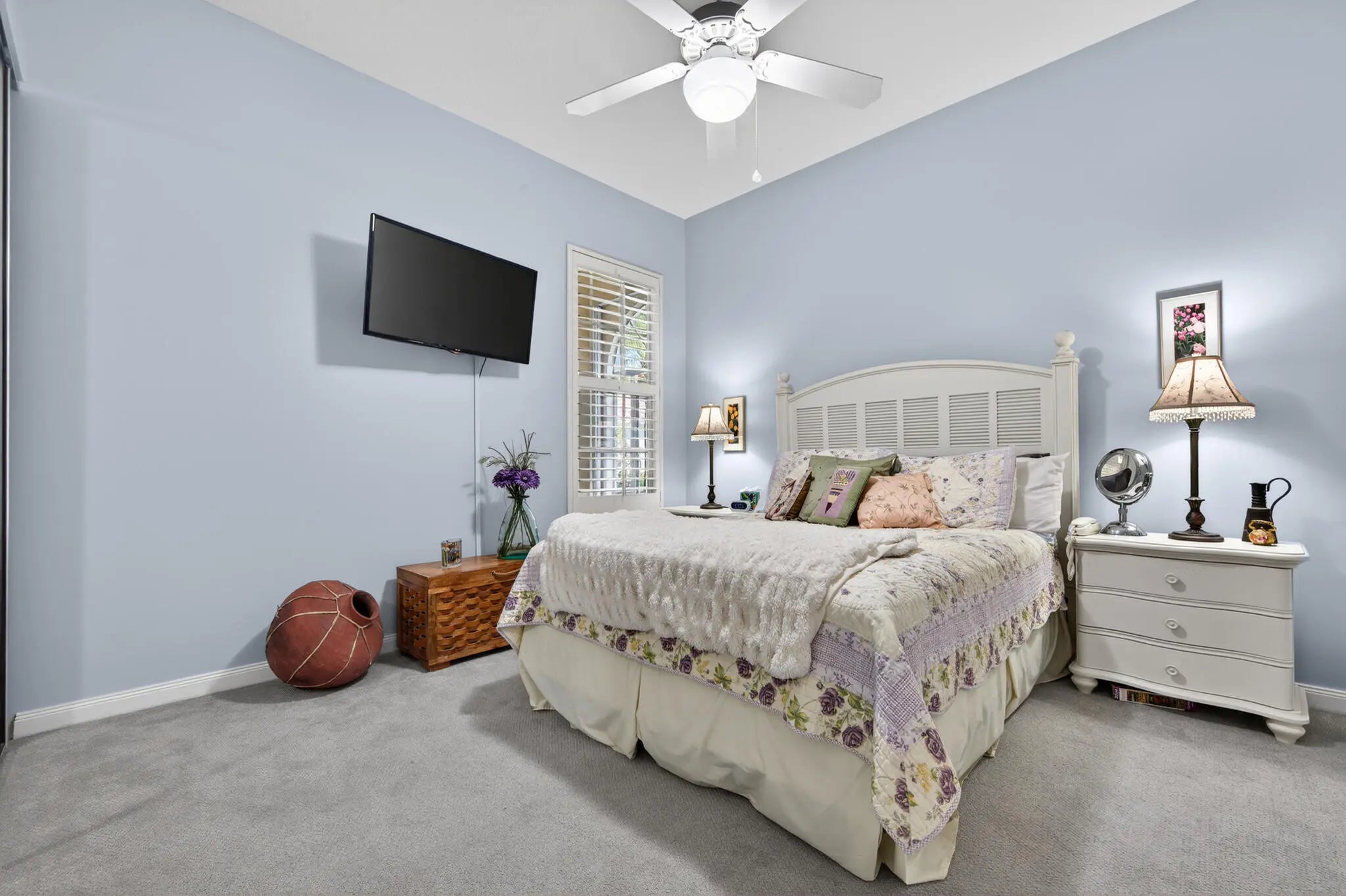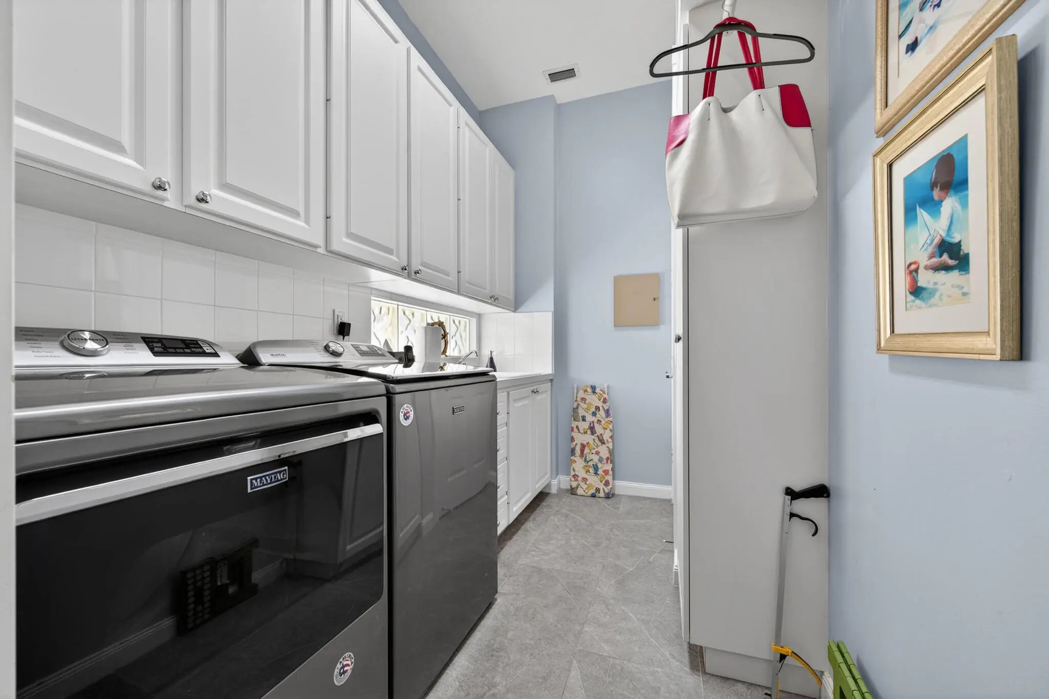Located in a highly desirable Tradition community, this original owner home sits on a premium corner lot surrounded by water on two sides. A standout feature is the expansive L-shaped driveway, providing ample parking for family and friends. Step inside through the screened entryway and you'll immediately notice the upgraded tile flooring in the living room, kitchen, and den. The glass sliders leading to the pool feature original etched glass artwork that add a unique touch, and the den/study features custom plantation shutters. The kitchen has been updated with stone counters and convenient drawers. The spacious living areas flow seamlessly to the outdoor oasis, where you'll find a heated, screened-in pool and a freshly painted pool deck, perfect for relaxing while enjoying the stunning water views in all directions! The owner's suite offers a true retreat with fully remodeled his-and-hers bathrooms, featuring new cabinetry, tile, and etched shower glass. There is ample closet space for all your stuff! Major system updates include a brand-new 2026 air conditioning system and this home's exterior has been freshly painted in February 2026. Even the garage has been upgraded with a custom floor, reflecting the same level of care found throughout the property. The enhanced landscaping makes this home stand out in this gated neighborhood within walking distance to shopping and dining in Tradition square! HOA amenities include cable, internet, alarm, lawn care, exterior painting, 24 hour manned gate, clubhouse with social activities, gym, pickleball, tennis, 2 heated pools.