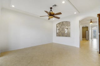 Welcome to The Cascades. A premiere active adult in St Lucie West. This home features over 2,000 ft of living space. Freshly painted interior. Updated bathrooms. Updated kitchen with all wood cabinetry and 42" upper cabinets. Matching SS appliances with a gas range. High ceilings, and lots of light. Configured as a 2 + den, which could easily be adapted to a 3rd bedroom. AC system updated 6/22. Gas water heater /16. Lots of entertaining hol space both indoors and outside. Large screened patio with wide lake view, with green belt and privacy wall. The Cascades features a 9 hole golf course, pickleball, tennis, gym, and a very active lifestyle. Minutes to all shopping and dining along St Lucie West Blvd. Easy access to I95 and the turnpike