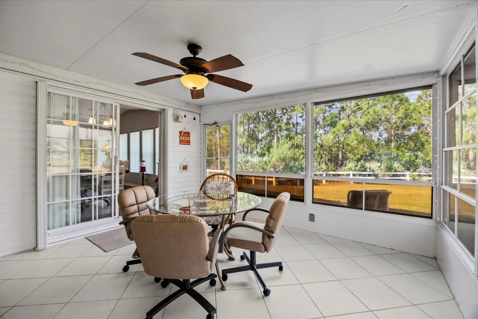 Enjoy peaceful preserve views from this beautifully maintained Islander III model in the desirable Savanna Club 55+ community. This home features laminate and tile flooring throughout, an open island kitchen perfect for entertaining, and two spacious bedrooms with two full baths plus a versatile den—ideal as an office or third bedroom. Relax in the enclosed lanai or take advantage of the oversized driveway and cost-saving irrigation well. Additional highlights include accordion shutters, a 2018 roof, updated A/C, and fully furnished turnkey convenience. Move right in and start enjoying the Florida lifestyle! Golf Cart negotiable. Exclusions apply- list available.