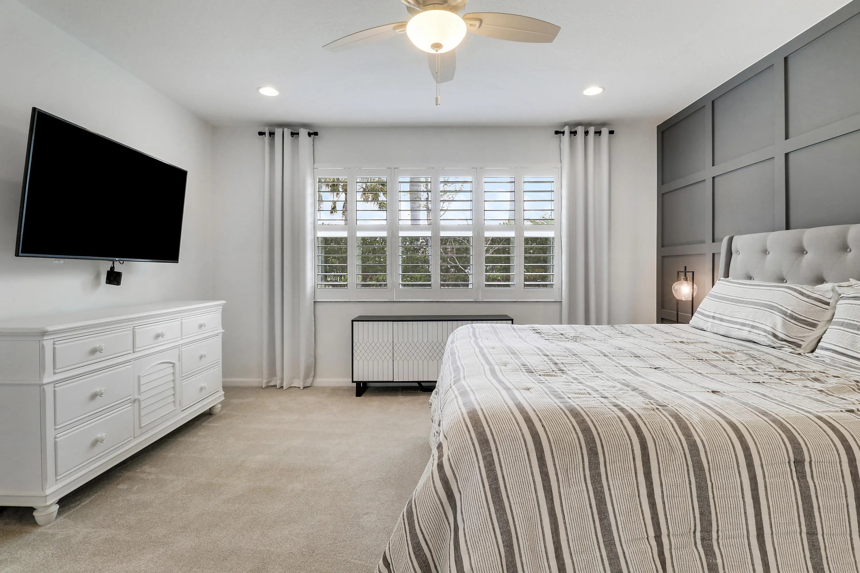 Welcome to the Briar floor plan a 3 BR/+DEN/2.5BA/2CG home in the desirable Manderlie community in Tradition. This thoughtfully designed home offers a spacious open-concept layout ideal for both everyday living and entertaining. The heart of the home features a bright and modern kitchen complete with white cabinetry, quartz countertops, SS appliances including a gas range. Large island perfect for gatherings. The dining area overlooks the private backyard, creating a warm and inviting atmosphere. The Briar plan includes generously sized bedrooms, including a serene primary suite with a walk in custom closet and a well appointed ensuite bath. Additional bedrooms provide flexibility for guests or family members. Den/Office is the perfect place to work from home or do hobbies. Special features include wood work details t/o, built in fireplace w/mantel, custom doors on den/office, upgraded light fixtures, plantation shutters, IMPACT GLASS WINDOWS/DOORS. Enjoy Florida living at its finest with a covered and screened lanai - perfect for relaxing mornings or evening get togethers! Fully fenced yard great for pets. This home is located in the vibrant, master planned community of Manderlie in Tradition, residents enjoy access to top notch amenities including a resort style pool, fitness center, sport courts, scenic walking paths and convenient location close to shopping, dining, and major roadways. Whether you are looking for a full-time residence or a seasonal retreat, this home offers the perfect blend of comfort and lifestyle. Schedule your private showing today!