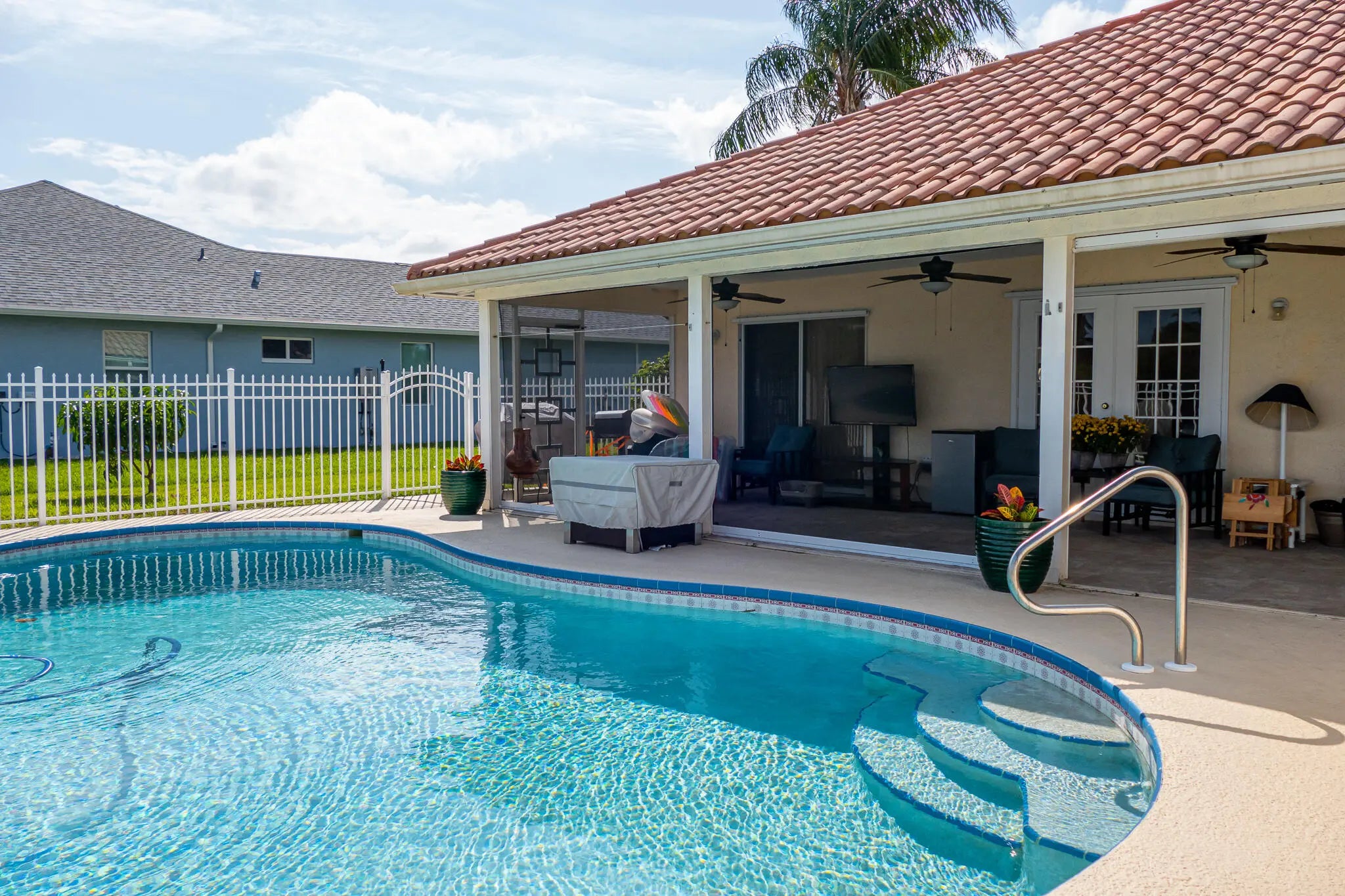 Spacious 4BR/2BA pool home on a rare 0.50 acre lot with beautiful lake views. This property offers an open layout with stainless steel appliances, granite countertops, and a newly installed AC unit. Enjoy an open air pool and an expansive yard with plenty of room for outdoor living or future additions. No HOA. A great opportunity for buyers seeking space, privacy, and a peaceful waterfront setting in Port St. Lucie.