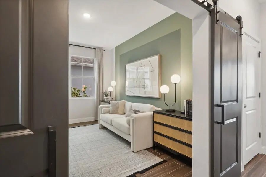 The Astaire offers a thoughtfully designed layout that blends comfort and style within an amenity-rich 55+ active adult community. Vaulted ceilings in the great room create an open, airy feel while showcasing beautiful preserve views. The kitchen is both functional and inviting, featuring beautiful brellin white cabinetry, a soapstone mist quartz central island, and a large pantry for added storage. The adjacent dining area seamlessly opens to the covered patio, making indoor-outdoor living effortless, while a 12-foot multi-slide door further enhances the connection between the great room and outdoor space. Designed with a split-bedroom floor plan, the home ensures privacy for the secluded primary suite, highlighted by elegant ceiling treatments. The luxurious primary bath features dual freestanding vanities, sleek finishes, a large shower, and a spacious walk-in closet. A private home office offers a quiet, dedicated space for work or study, complete with stylish barn doors.