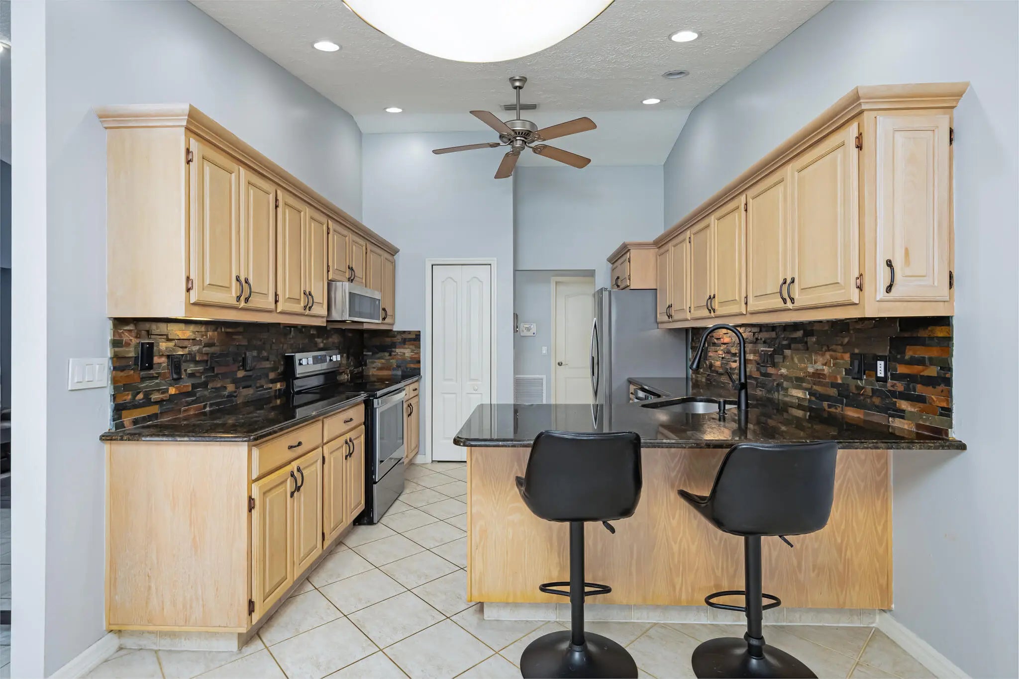 Move-in ready 3/2 pool home with no HOA in Port St. Lucie! This well-maintained home features a versatile flex room off the primary suite — ideal for a home office, gym, or nursery. The kitchen has been updated with granite counters, matching backsplash, and stainless steel appliances. Bathrooms feature new vanities for a fresh, modern look. Additional upgrades include a roof and water heater (2018), washer, dryer, and patio screens (2022), plus a new A/C system and fence (2023). Out back, a screened patio, sparkling pool, outdoor kitchen, and freshly painted pool deck create the perfect space for relaxing or entertaining year round. The storage shed is wired with electricity and lighting, making it easy to convert into a workshop, home gym, hobby space, or additional storage. Minutes from the Turnpike, I-95, Crosstown Parkway, and US-1 with shops, dining, and Treasure Coast beaches just 15-20 minutes away. Move-in ready, full of upgrades, and waiting for its next owner!