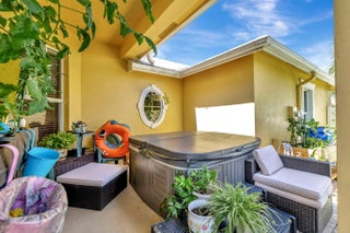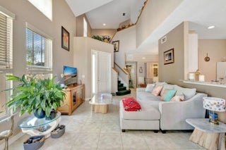 CAN BE PURCHASED THROUGH FLORIDA HOMETOWN HEROES DOWNPAYMENT ASSISTANCE PROGRAM. Beautiful 3-Bedroom, 2.5 bath townhome is the CARLYLE model and an end-unit with master bedroom on ground level. Upgrades, include hurricane impact windows and doors throughout, central vacuum, vaulted ceilings, oversized walk-in closet in the owner's suite, fenced backyard, reverse osmosis and water softener, rain barrel to water lawn and shrubs to save on municipal water, exterior gutters. Jacuzzi can convey with acceptable offer. Master bedroom is on the ground level and two bedrooms are on the second level with an added loft/media room. HOA payment covers lawn maintenance, roof replacement, exterior paint, exterior insurance, roof repairs, alarm, cable and phone landline.