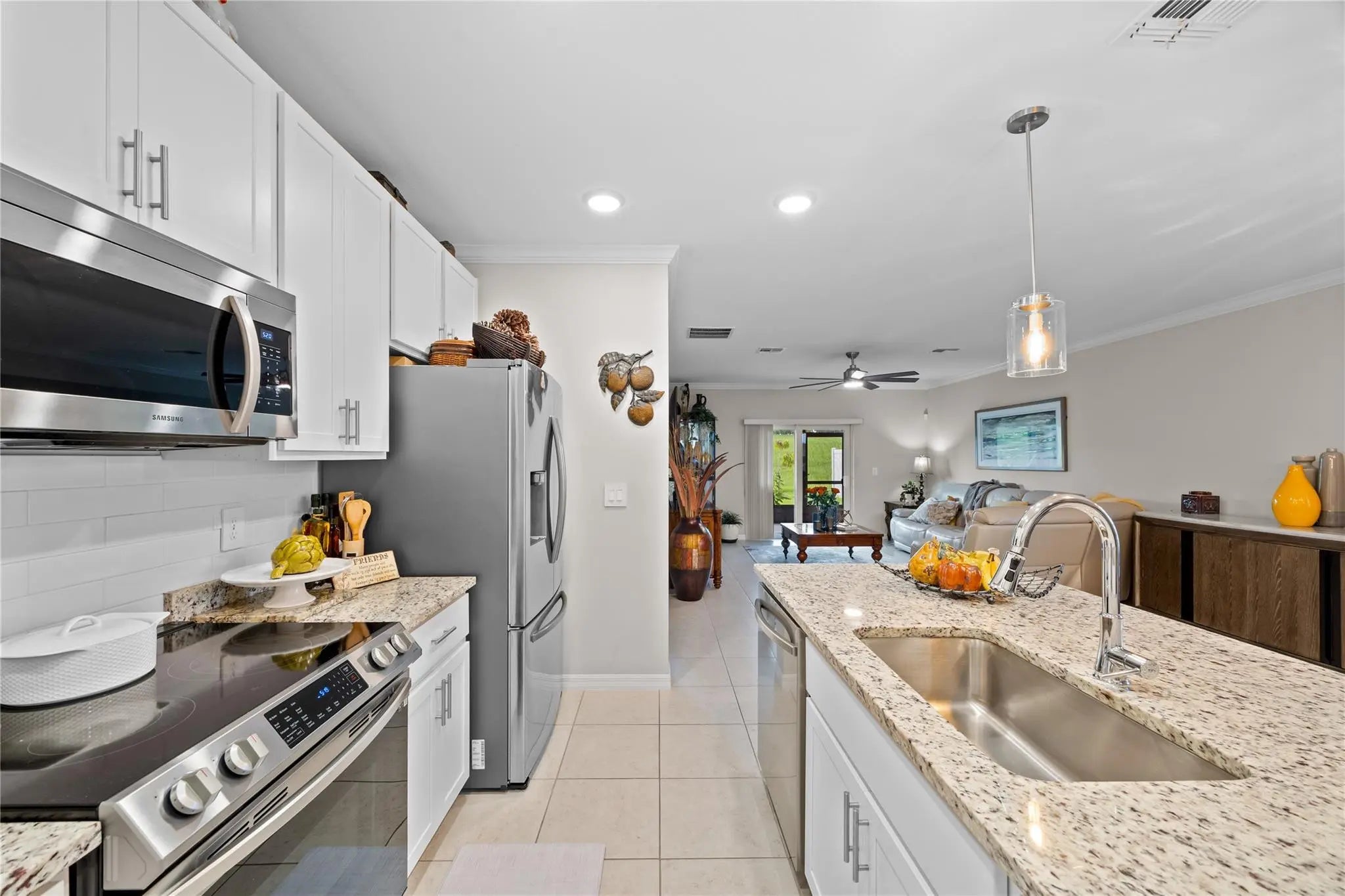Modern 4-Bedroom Home in Crosstown CommonsBuilt in 2022, this pristine 4-bedroom, 2.5-bathroom home offers a spacious open floor plan with upgraded appliances and granite countertops throughout. Impact windows provide added security and energy efficiency. The private backyard, bordered by a berm, features a screened lanai—perfect for outdoor living. Additional highlights include epoxy flooring in the garage. Conveniently located near I-95, this home combines modern design with functionality.