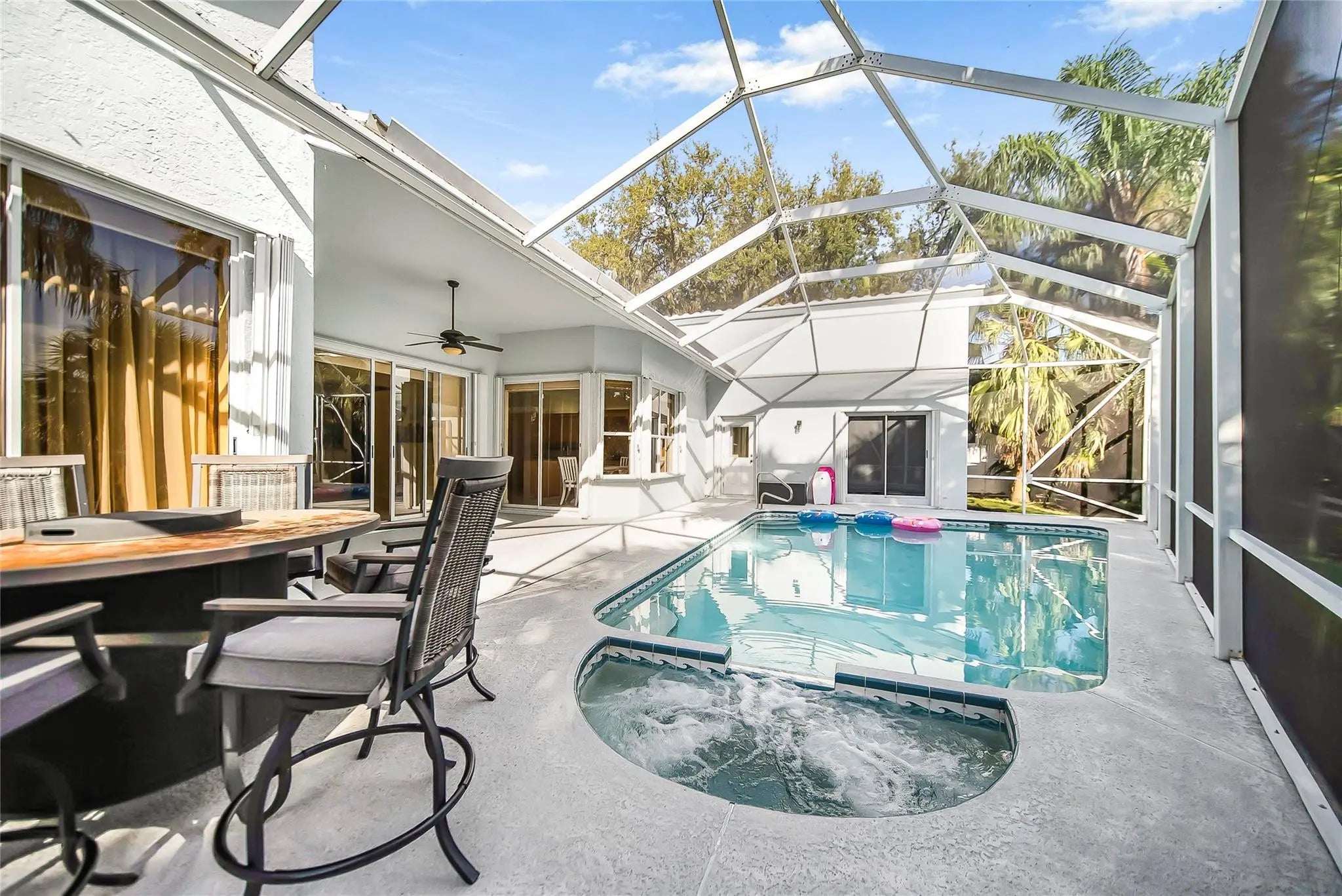 SELLERS ARE MOTIVATED!!! AN EXTENSION WAS DONE MAKING THIS PROPERTY A 4/3. Come experience and make it yours, this piece of paradise nestled in a corner lot by the Saint Lucie River. A beautiful single family home with screened in pool/jacuzzi, a private dock with a $25K boat lift providing ocean access through Saint Lucie river in just 45 minutes to reach the ocean. Custom made cabinetry in the formal dinning room and a beautiful office with great taste! Awesome 4 bedrooms, 3 baths corner lot with fruit trees. Open floor concept with a eat in kitchen with custom made cabinets, granite countertops. Marble floors throughout, and crown molding in main areas. Master bedroom with walk in closets, separate shower stall and beautiful tub to enjoy.