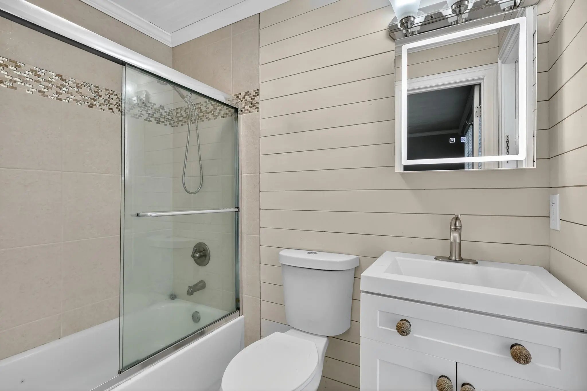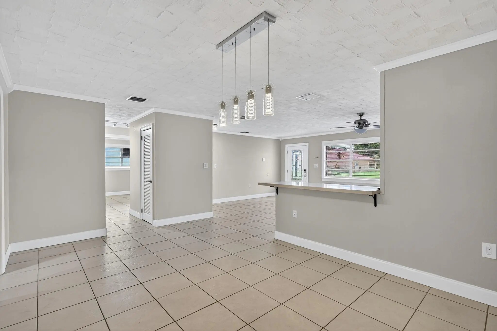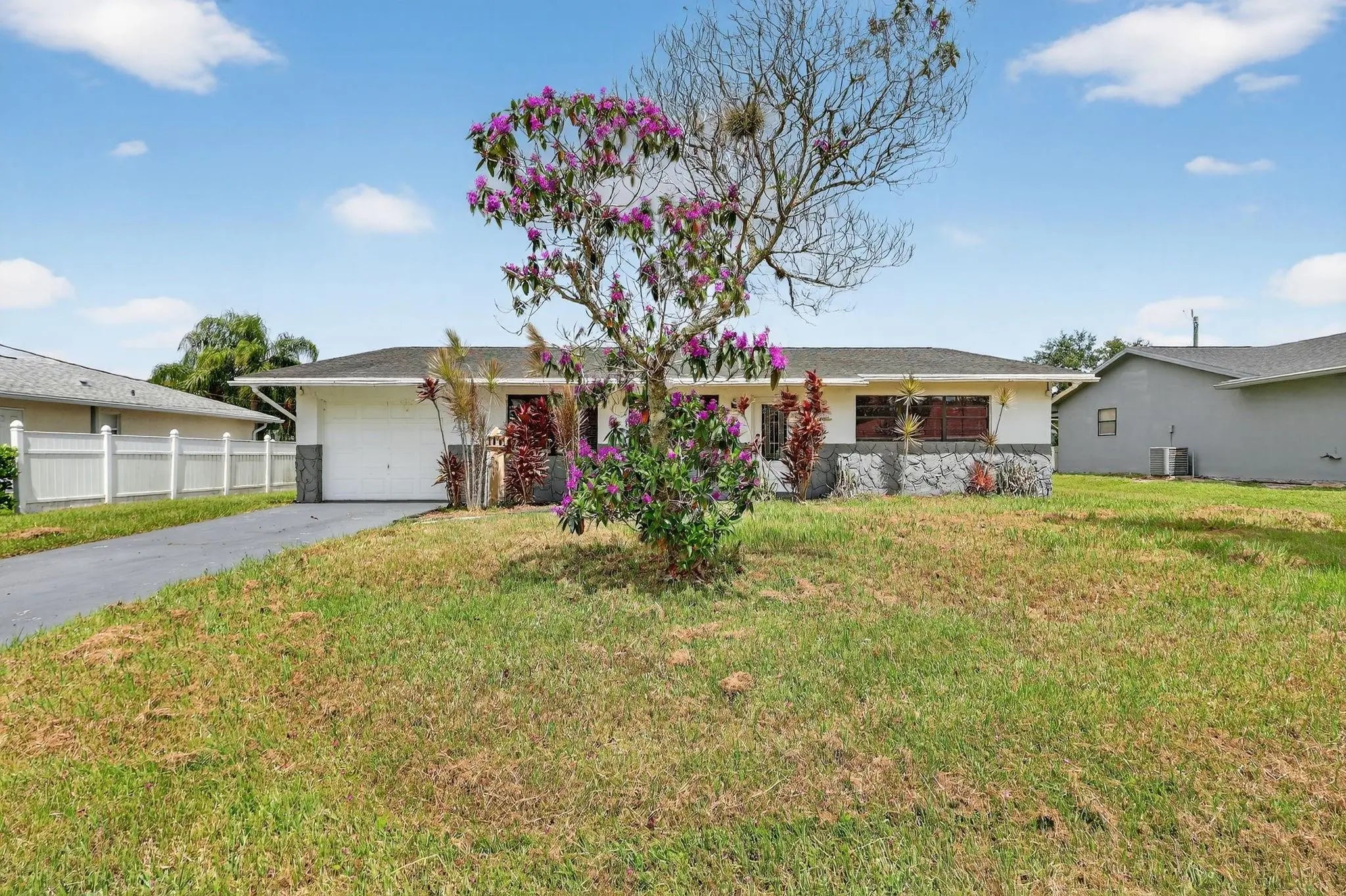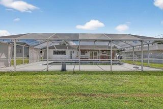 Step into this 3-bedroom, 2-bathroom POOL home, perfectly situated in the heart of Port St. Lucie. Whether you're looking for your home or a property with income-producing potential, this one has it all—including a partially converted garage ideal for an efficiency unit or mother-in-law suite. The home features crown molding, tile flooring, and a chef-inspired kitchen that boasts white shaker cabinets, stainless steel appliances, quartz countertops, a stunning tile backsplash, and a chic breakfast nook with a backlit accent wall and TV—perfect for casual dining or morning coffee.Step outside to your private oasis! The screened patio and outdoor tiki bar overlook a sparkling pool, making this the ultimate home for entertaining, relaxing, or hosting unforgettable summer BBQs.