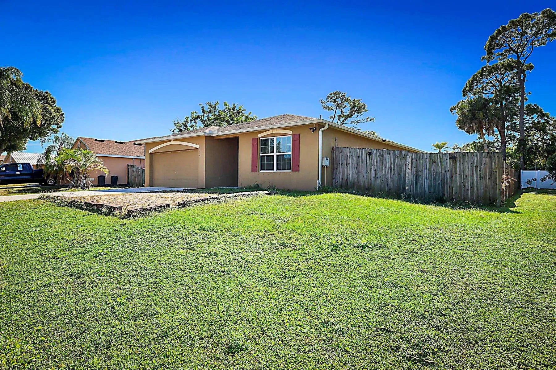 **NO HOA** Beautifully maintained 4-bedroom, 2-bathroom home with an open, split floor plan. Built in 2018, this home features granite kitchen countertops, GE appliances, a front flex room with built-in desk and shelving. Enjoy a dedicated laundry room with Maytag washer/dryer and a spacious 10,000 sq ft lot with side yard access large enough for a boat. The 2-car garage includes a hurricane-rated door. Major systems from 2018 include the A/C, water heater, and shingle roof. Zoned for desirable St. Lucie schools and located close to shopping, dining, and major roadways. (Since photos have been taken, entire interior has been painted and new flooring has been installed in 3 of the bedrooms)
