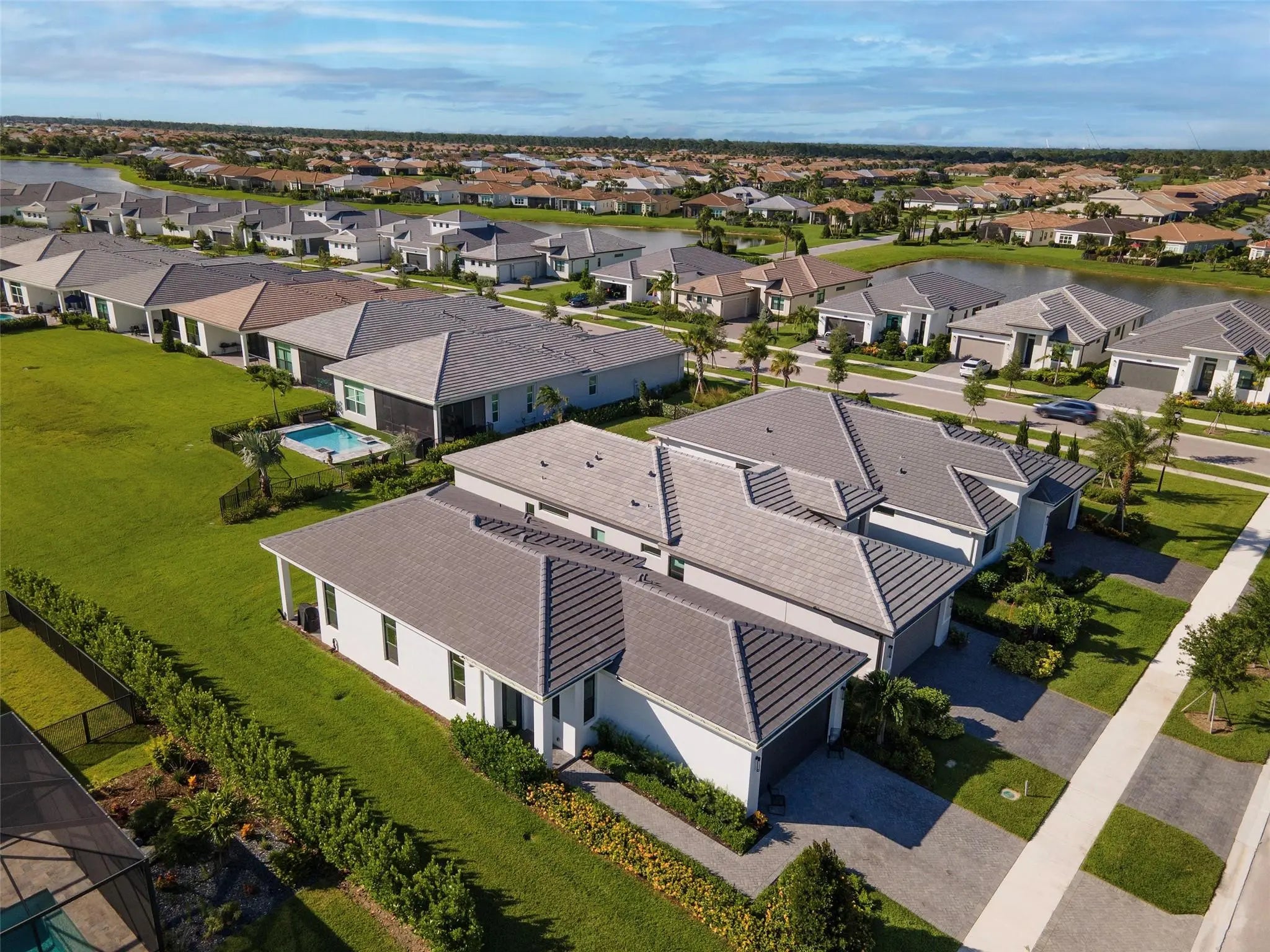 NEWLY BUILT Kolter Home in PGA Verano's newest section of Fortezza! Fully upgraded 2/2 + bonus 3rd flex room. Open floor plan offers direct views of the lake from living areas. Kitchen, Family & owner's suite has 12' ceilings with easy access to outdoor living. Lovely primary suite features oversized spa bath & frameless shower. Upgraded modern black faucet/shower hardware. Well appointed kitchen with quartz countertops, contemporary cabinets & upgraded modern square baseboards & trim. Enjoy spectacular sunsets from the living area that overlooks the stunning waterfront. Enjoy all the amenities of living in Verano. Pool, Clubhouse, Tennis, Pickleball, Golf course & state of the art Fitness Center! FLOOR PLAN IN PHOTOS.