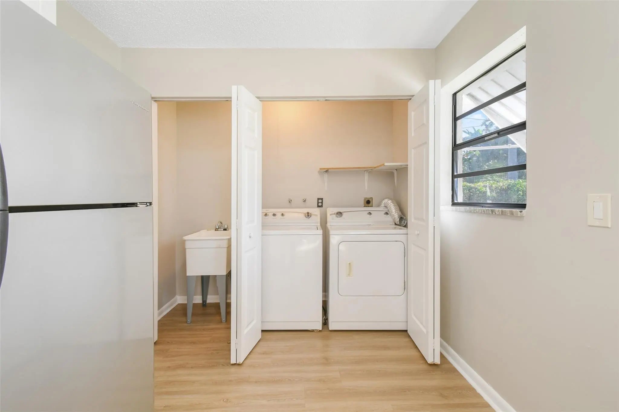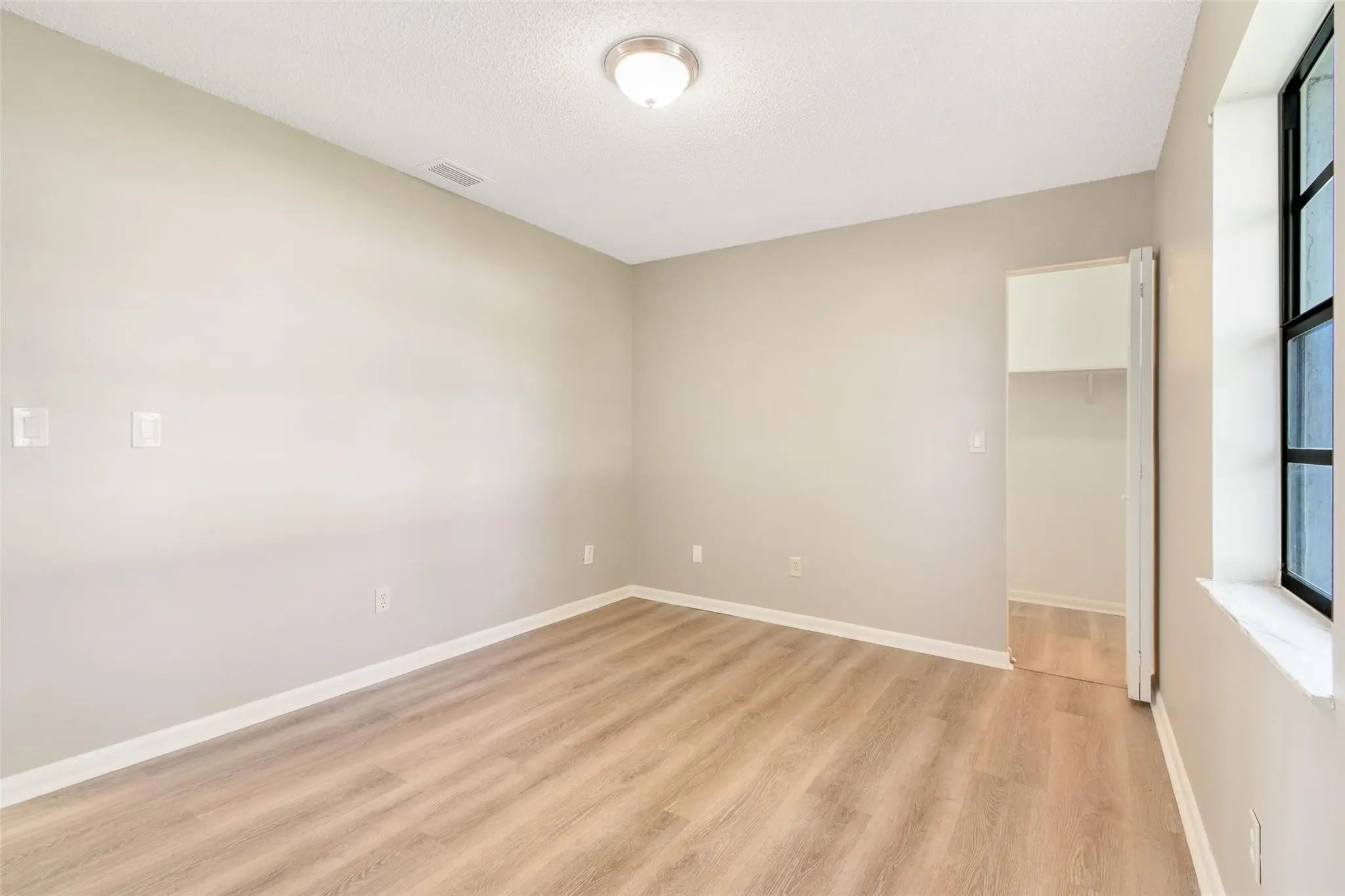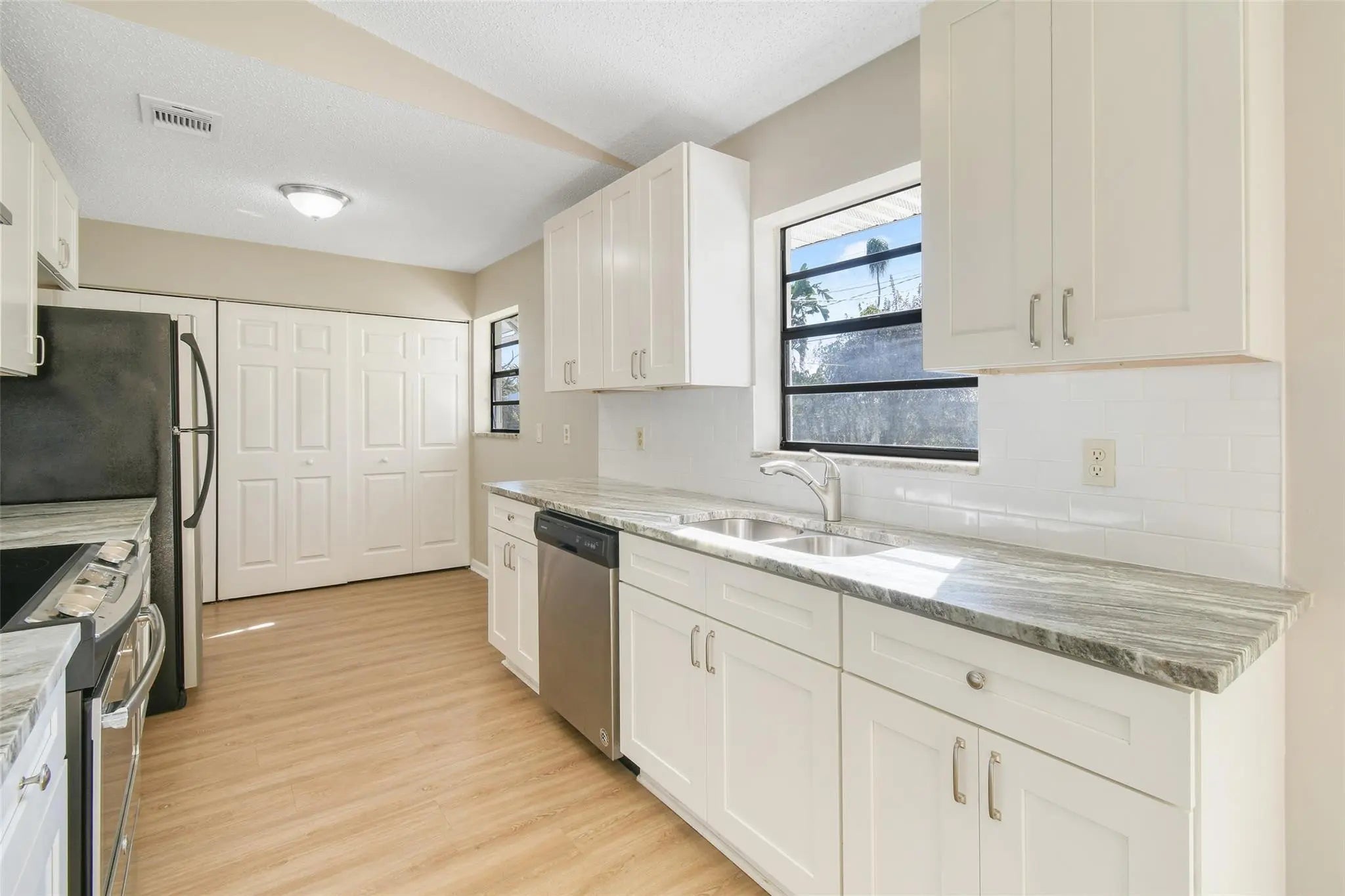 This move-in ready home features a bright, open floor plan with fresh neutral finishes throughout. The spacious living and dining areas flow seamlessly into the kitchen, which offers white cabinetry, ample counter space, and sliding glass doors that bring in abundant natural light and provide easy access to the backyard. Bedrooms are generously sized, including a large walk-in closet for added storage. The updated bathroom includes a modern vanity and fixtures. Enjoy the convenience of an indoor laundry area and an attached one-car garage. Outside, the expansive backyard offers plenty of room for entertaining, pets, or future customization. Conveniently located near shopping, dining, and major roadways. Schedule your showing today! New AC in 2024!