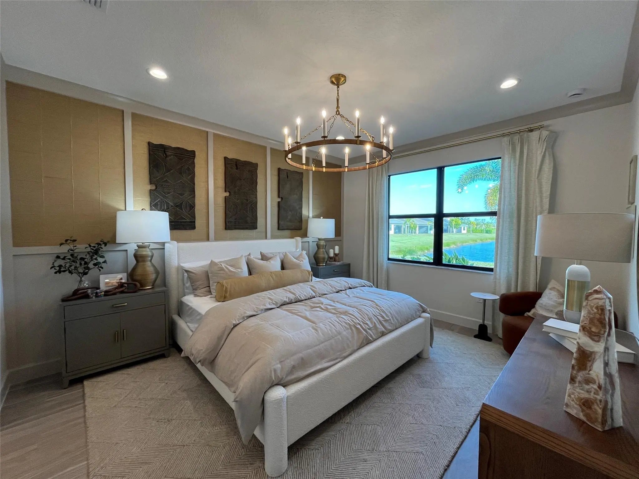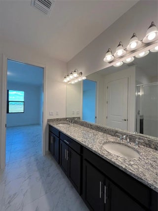 Come enjoy this BRAND NEW WATERFRONT VILLA at Valencia Parc at Riverland, the premiere Adult Lifestyle community in Port Saint Lucie. This gorgeous unit is AVAILABLE NOW and ready for you to move in and start enjoying all the GREAT amenities RIVERLAND offers. Large kitchen with 10Ft Island, pantry, dining area and spacious living room. Screened patio overlooking the serene lake. Neutral 24" Porcelain throughout. Huge master suite with enormous walk in closet and DUAL sinks in Master Bath. Large 2nd bedroom with closet and adjacent full bath. Laundry area with washer & dryer. 1 CAR garage and GOLF CART garage. PLEASE NOTICE THAT PICTURES 33-67 ARE OF FURNISHED MODEL HOME AND FOR ILLUSTRATION ONLY.