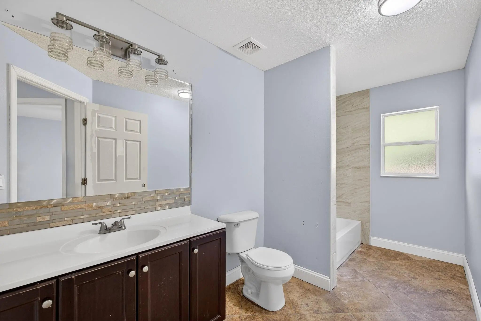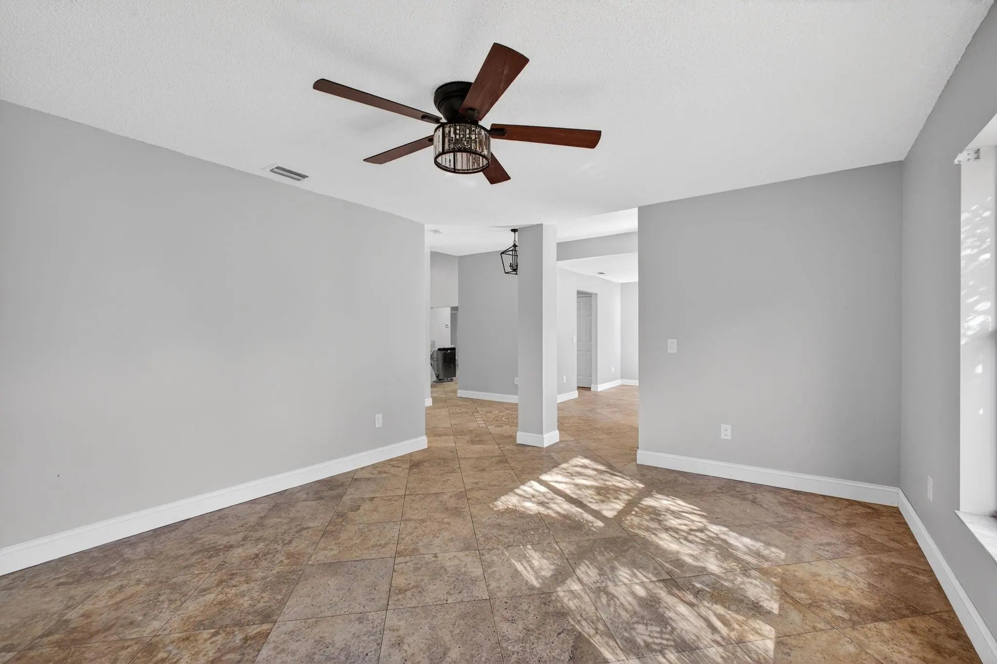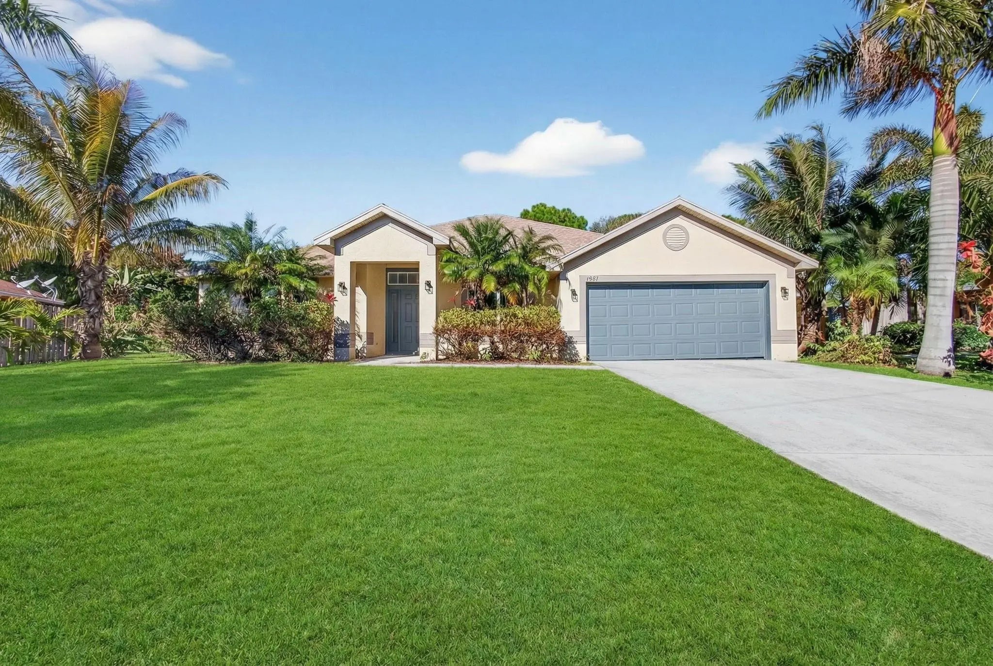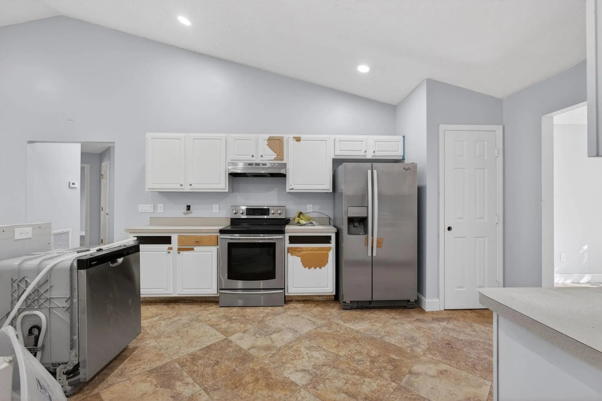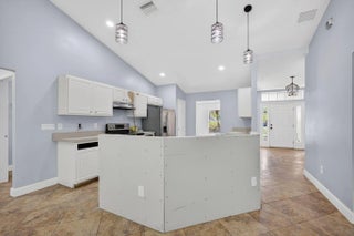 Partially remodeled single-story home with brand new roof and brand new HVAC located in a quiet Port St. Lucie neighborhood with no HOA. Interior features fresh paint, updated lighting, tile flooring in main living areas, and wood-look flooring in bedrooms. Open, vaulted-ceiling layout with multiple living or flex spaces. Kitchen remains unfinished with existing cabinetry and countertops; all appliances are purchased and on site for installation. Bathrooms include updated tile surrounds with walk-in shower and soaking tub; vanities not installed, allowing buyer customization. Two-car garage. Large backyard with room for a pool or entertaining. Value-add opportunity close to shopping, dining, schools, and major roads. Sold as-is. Appliances convey.