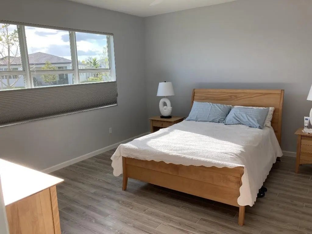 Block house with impact doors and windows for storm protection. A bright and airy interior, open floor plan with a flex / den extra room. Three large bedrooms with 2 1/2 bathrooms, interior house tiled, Approx 1,997 sq ft of living space. many upgrades include floor tile, quartz counter tops, kitchen island, large walk in pantry, custom window treatments, electrical fixtures, interior walls painted, large stainless kitchen sink. A natural gas community for cooking, heating and drying. Large walk in closet in primary bedroom with double sinks and double sinks in guest bath. 2026 January exterior house painted $4,000. Community exercise building, outdoor pool and spa. Pickleball