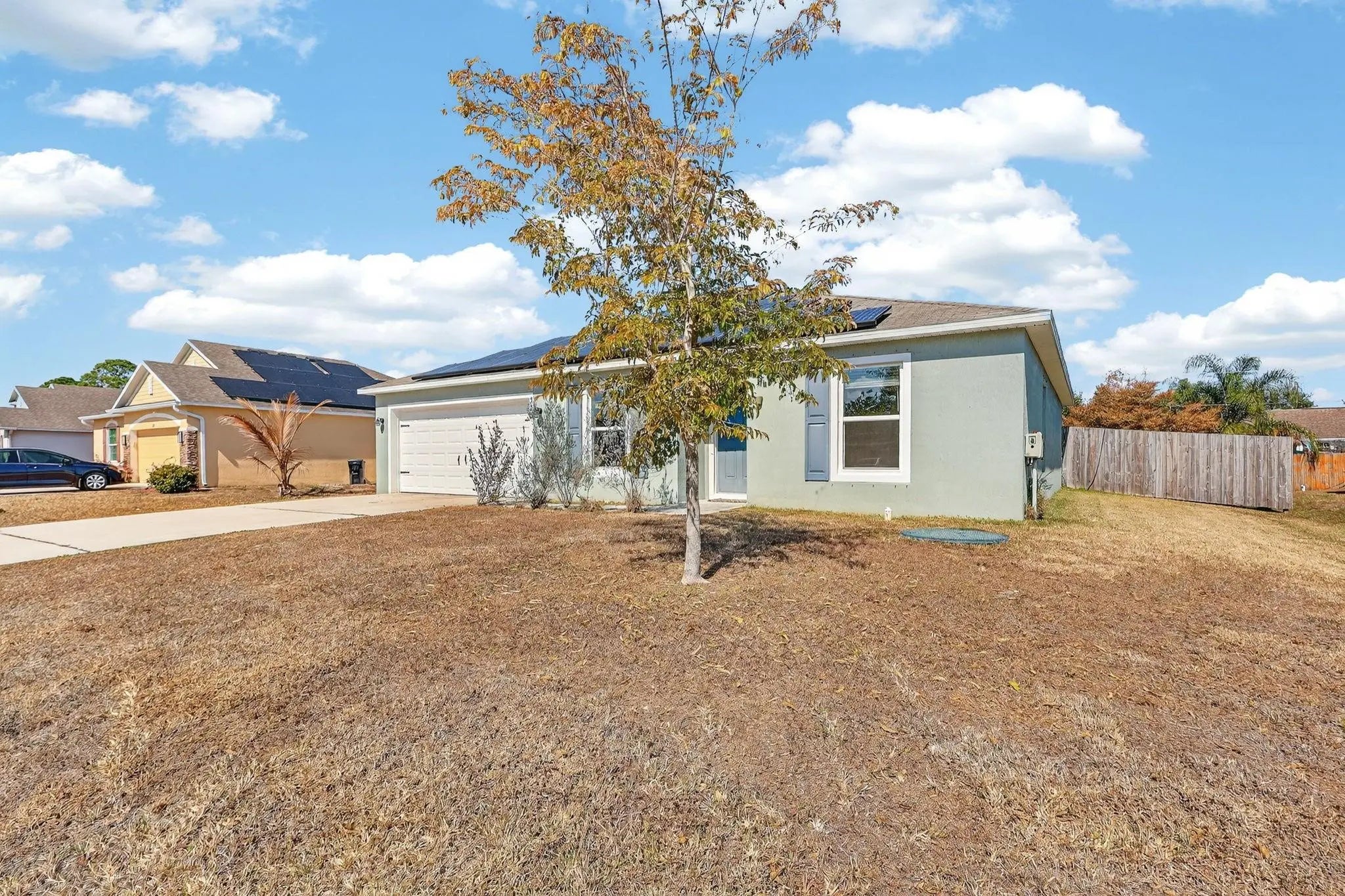Spacious 3-bedroom, 2-bath Foxtail Model by American Builders, built in 2020. This home features a functional open layout with modern finishes and the benefits of newer construction. $50,000 solar panel system is included in the sale, providing significant energy savings and the ability to eliminate your electric bill. Public water and sewer further add to the home’s low-maintenance appeal.Located in a great area, the property also features a large, privacy-fenced yard. Enjoy this move-in ready home with energy efficiency and long-term value.