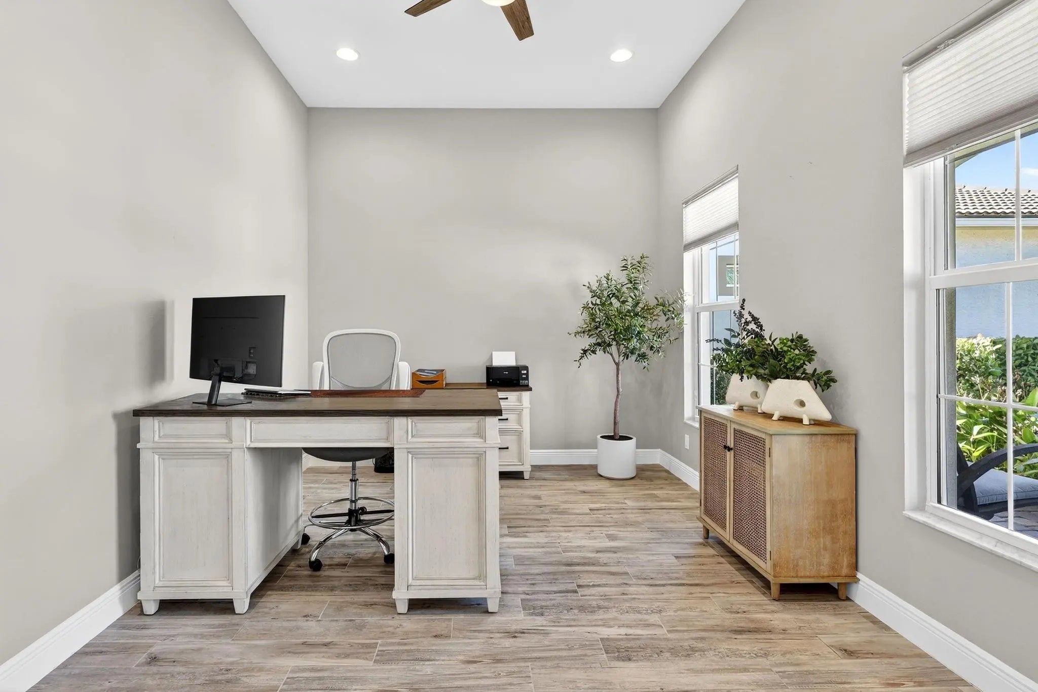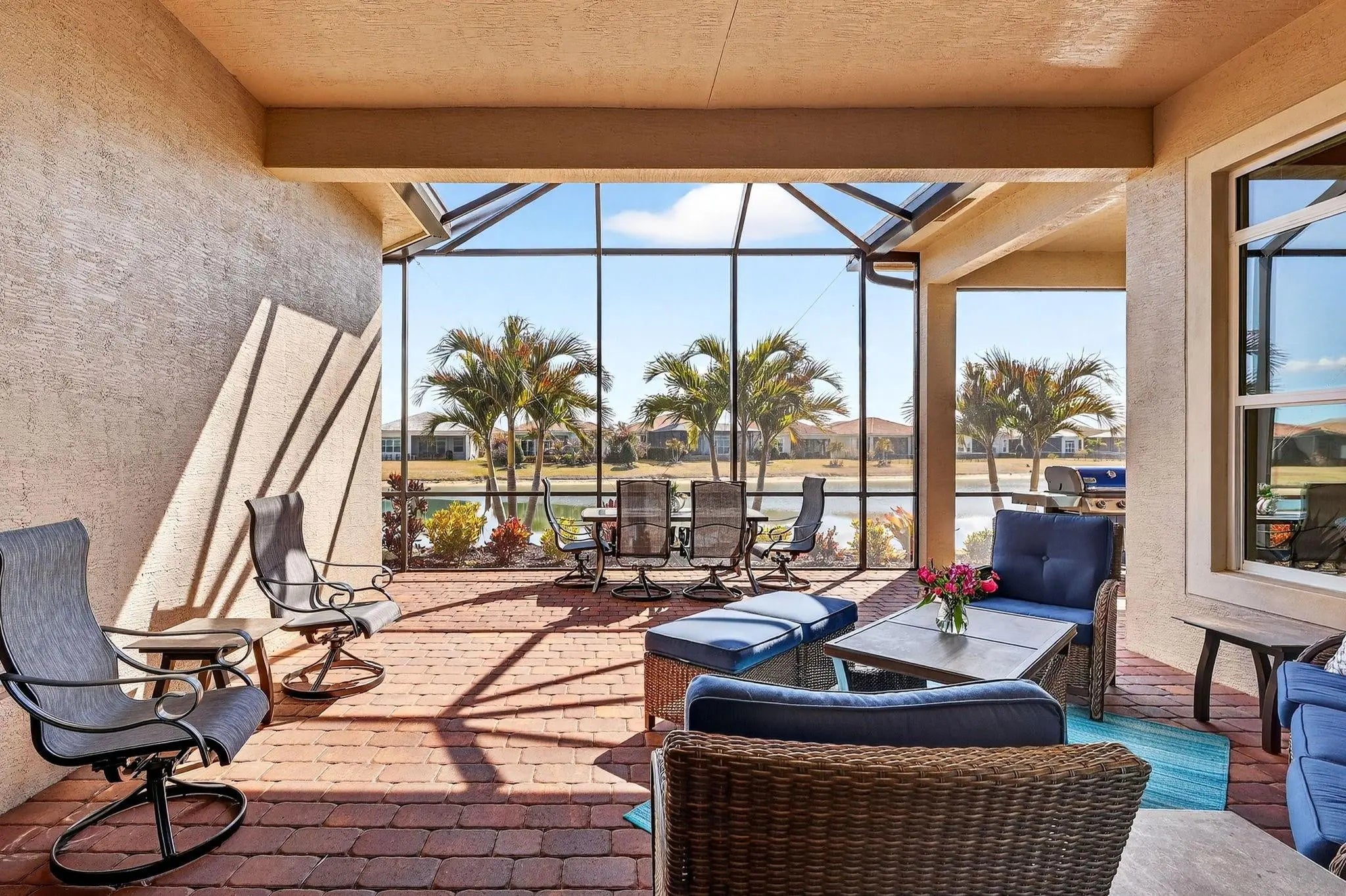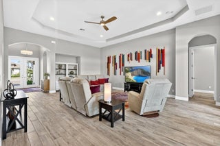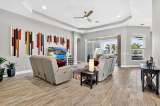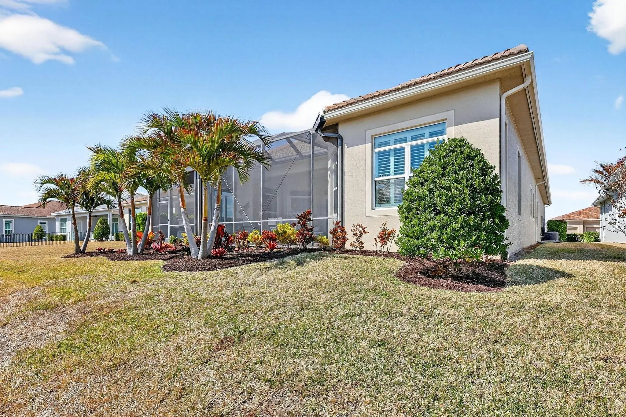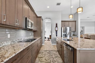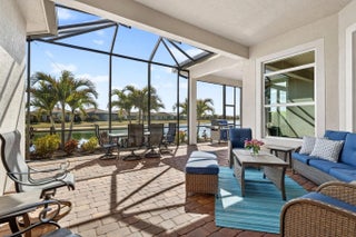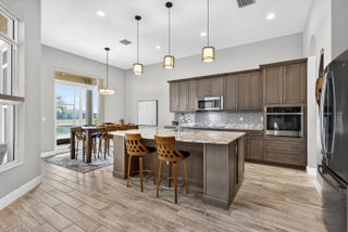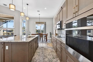 Located in the gated community of PGA Verano this 2,758 SqFt Bellacerra model offers 3 bedrooms,each with an ensuite bath,office & half bath. Separate vanities in primary bathroom. Tile flooring throughout,custom light fixtures,plantation shutters & window shades. The kitchen is equipped with granite countertops,upgraded cabinetry,induction cooktop,refrigerator. The home includes hurricane impact windows/doors. Exterior features include an epoxy-coated 3-car garage,expanded driveway,screened patio overlooking the water with upgraded landscaping. Residents have access to amenities at Club Talavera, which include pools,fitness centers,pickleball, tennis,basketball,bocce,scheduled social activities. Optional golf membership provides private cart access to the 54-hole courses at PGA Golf Club.